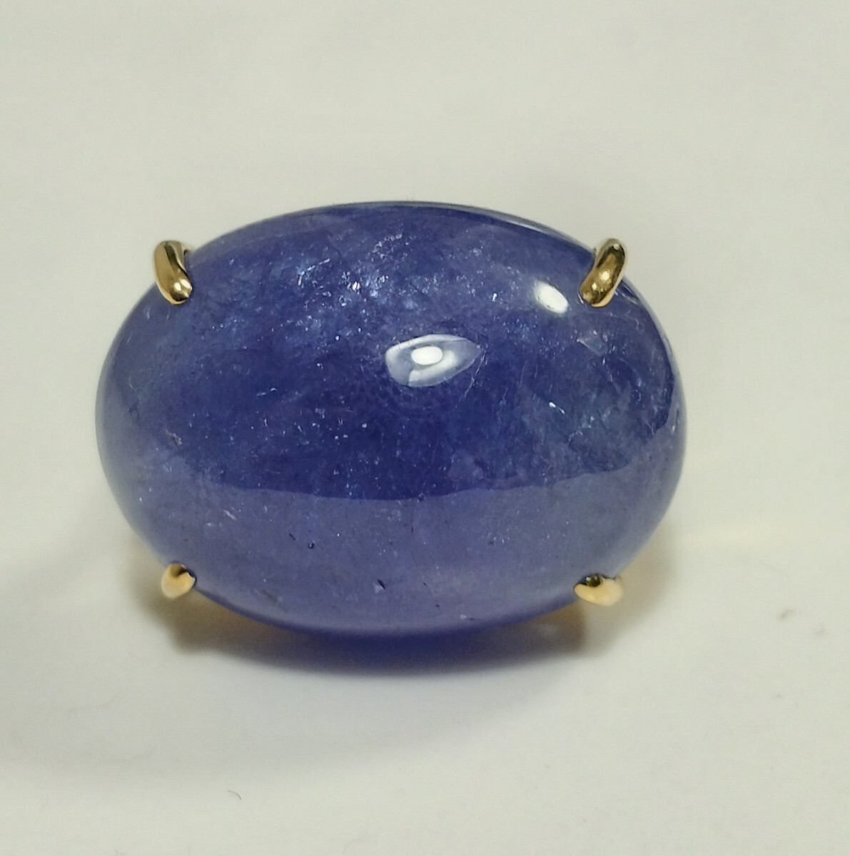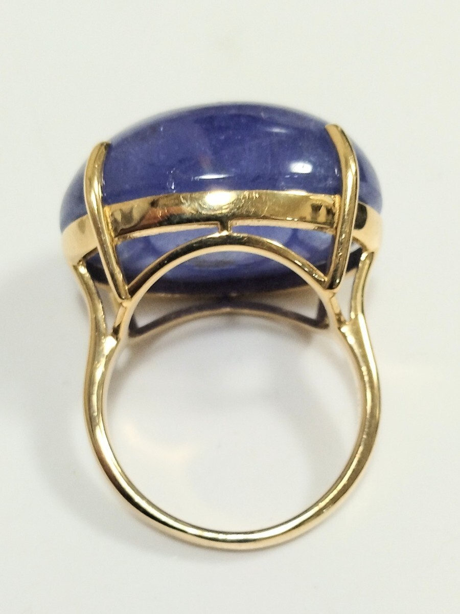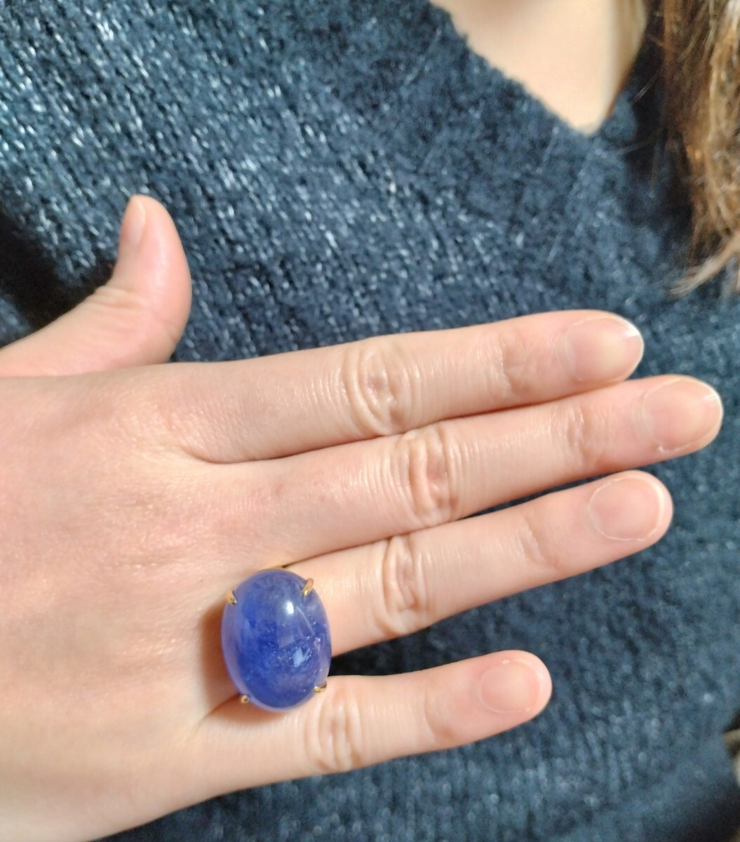 このリングには、深い紫色のタンザナイトが使用されています。高品質な宝石で、特にその色合いが魅力的です。