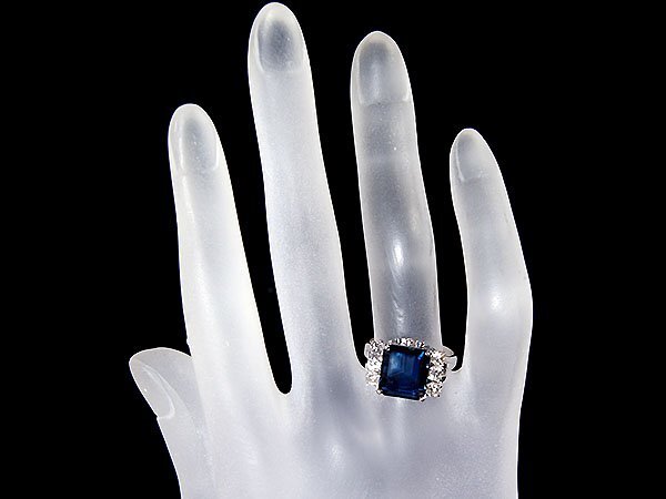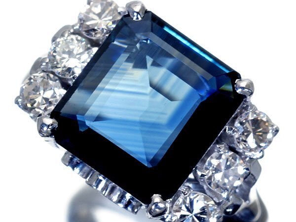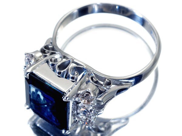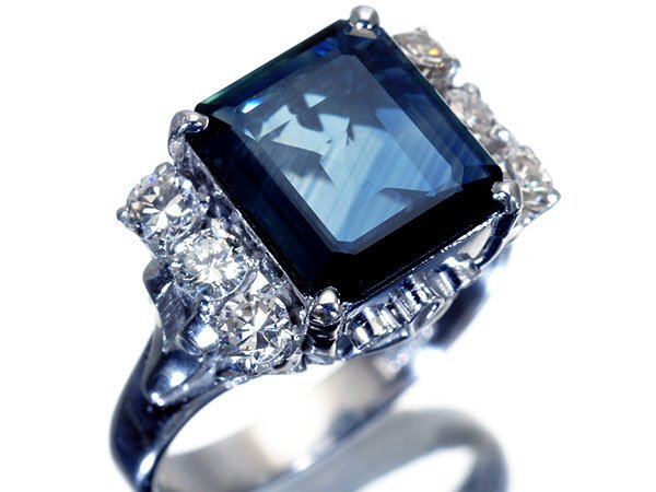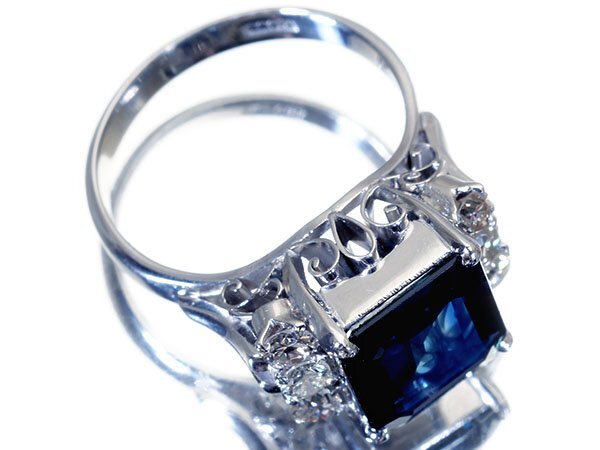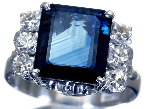 超希少なエメラルドカット大粒上質天然ブルーサファイア3.29ct&良質ダイヤモンド総計0.60ctを素敵に宝飾した、高級K14ホワイトゴールドリングを激安価格で特別大放出致します!