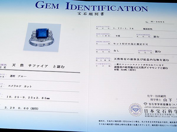 1石で3.29ctと大粒サイズで、エメラルドカットの美しい透明感に、濃厚で奥から鮮やかなブルーカラーの煌きを魅せてくれる超希少なオーストラリア産の大粒上質天然ブルーサファイアです!
