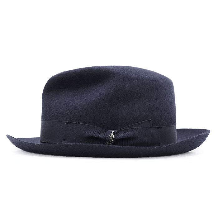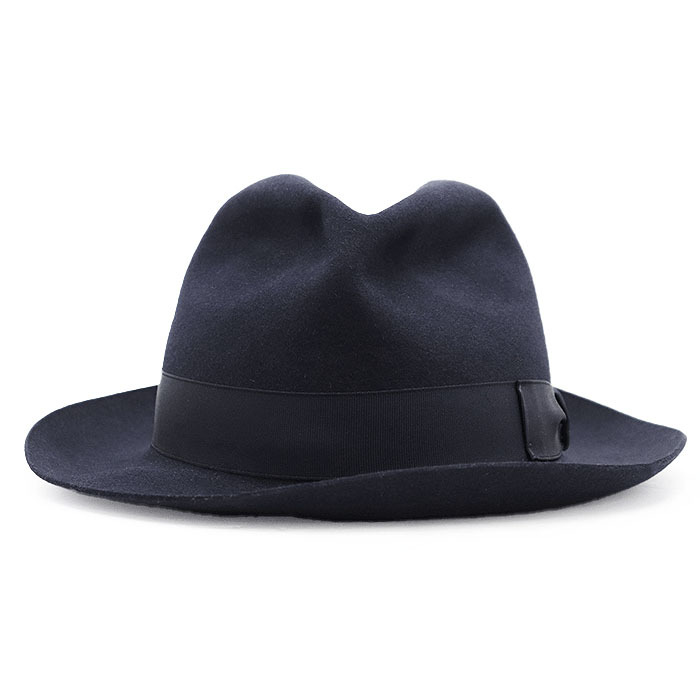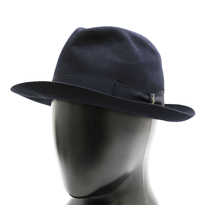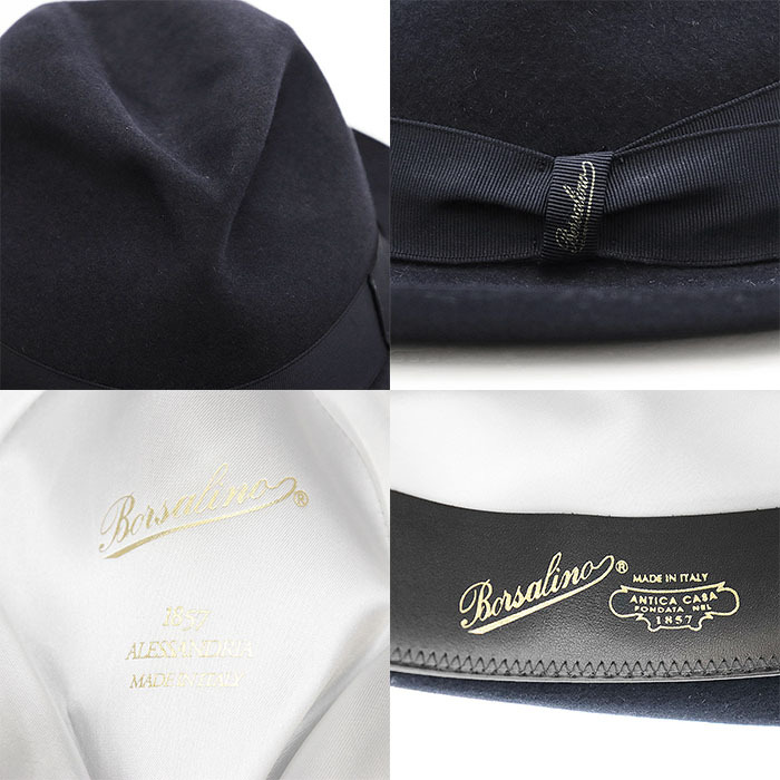 シリーズBorsalino ボルサリーノ ハット フェドラ フェルト ロゴ シグネチャー プリント リボン グログラン ユニセックス 56 紺