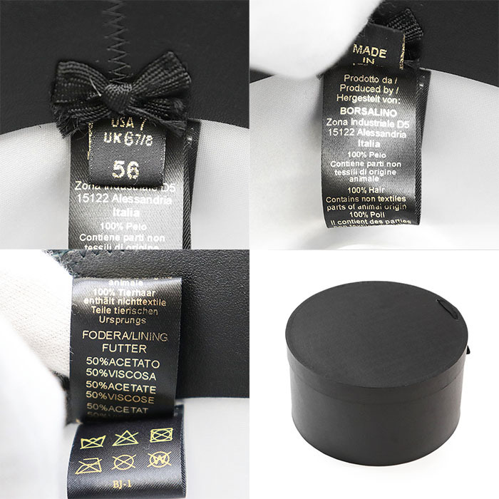 SALE【美品】Borsalino ボルサリーノ ハット フェドラ フェルト ロゴ シグネチャー プリント リボン 箱付属 ユニセックス 56 紺 伊製