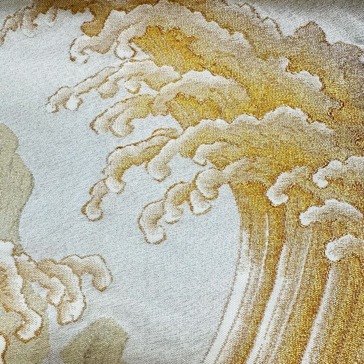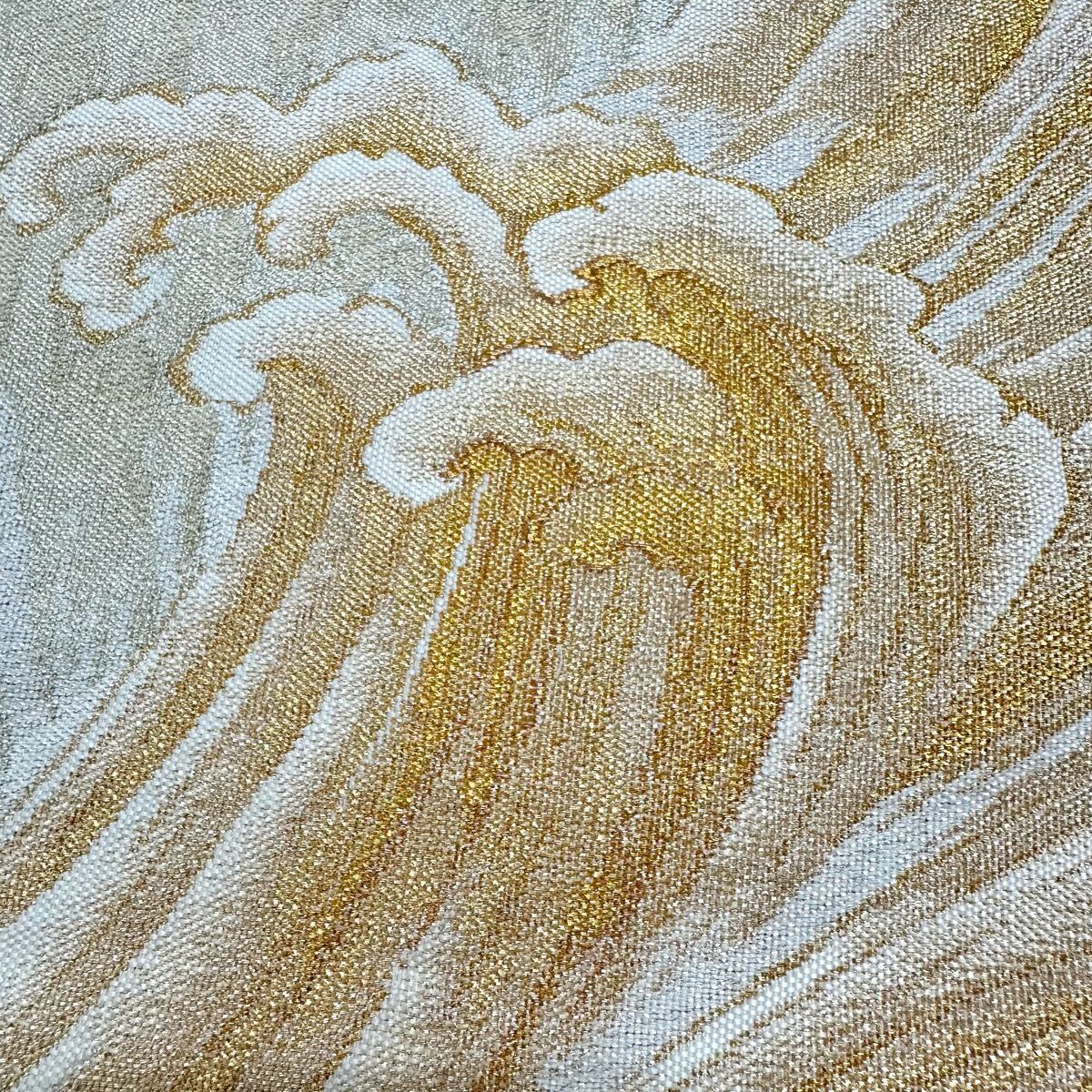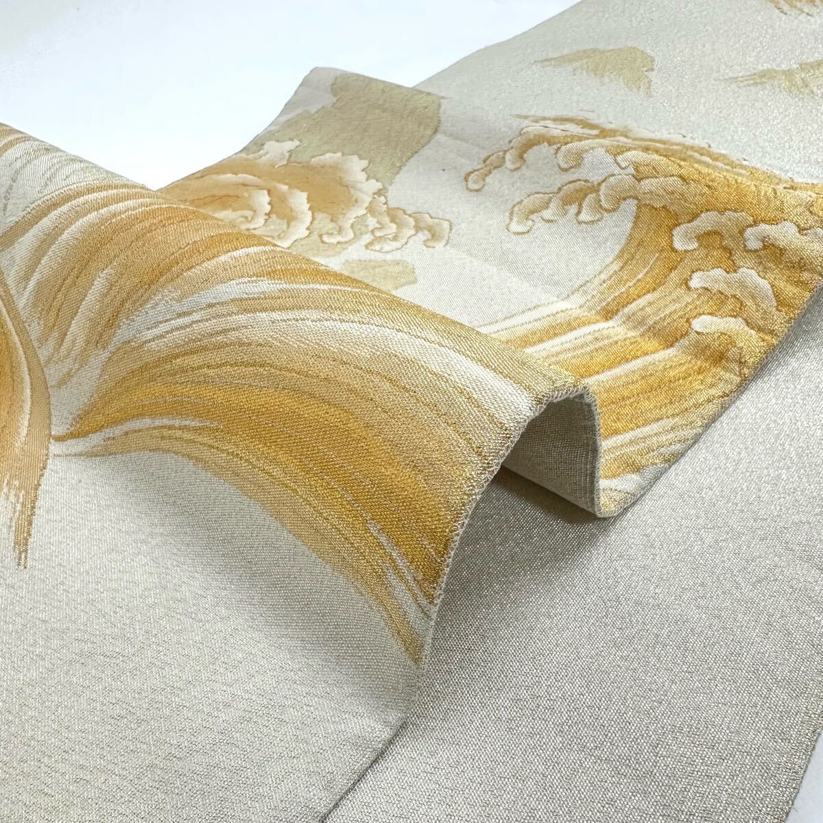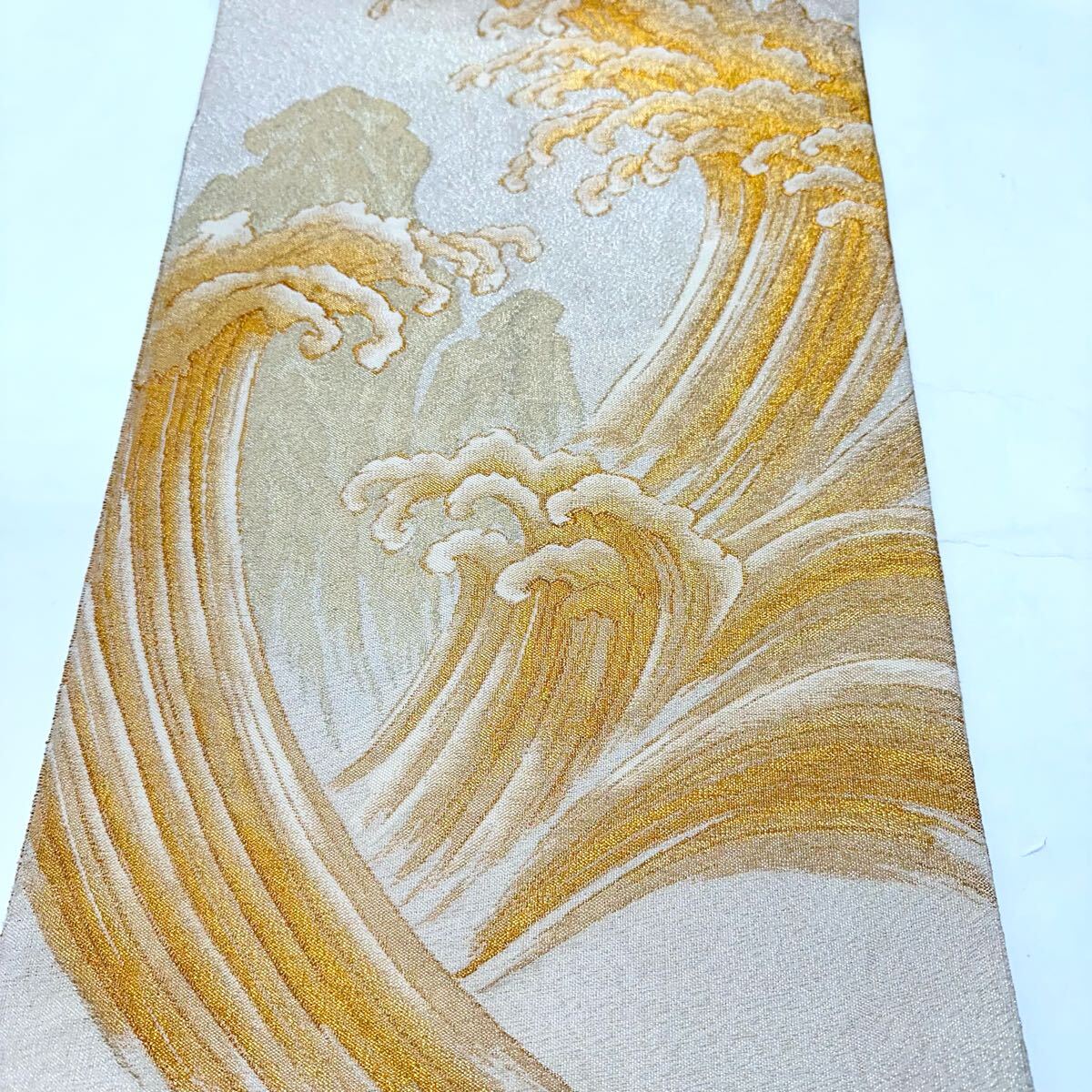 【七福】c664 逸品 高級品 正絹 袋帯 六通 波 金糸 豪華
