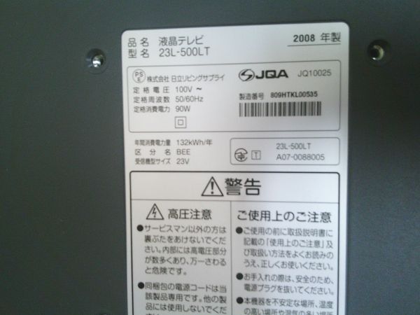 日用雑貨 071901 日立リビング 液晶テレビ HITACHI 23L-500LT 2008年 ジャンク