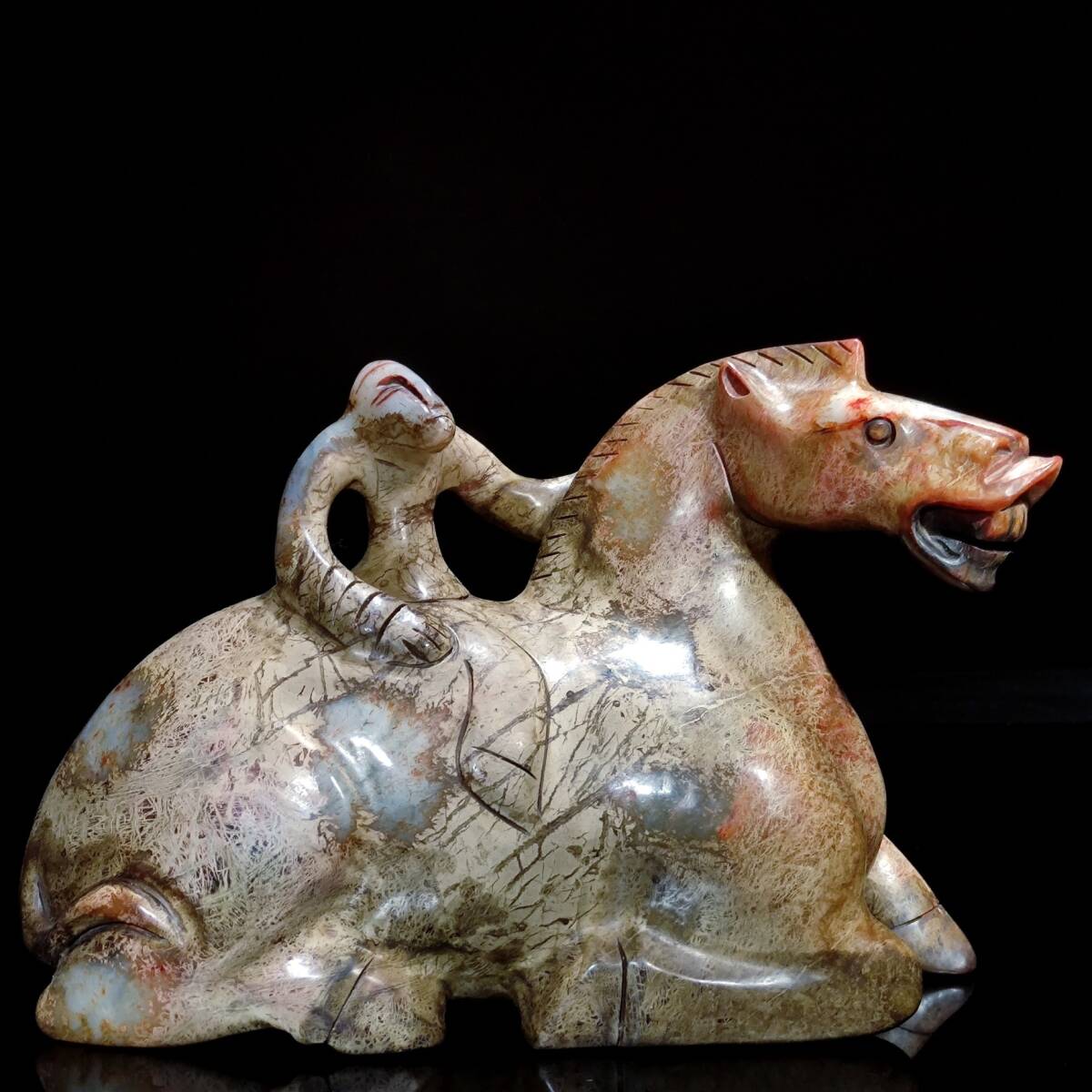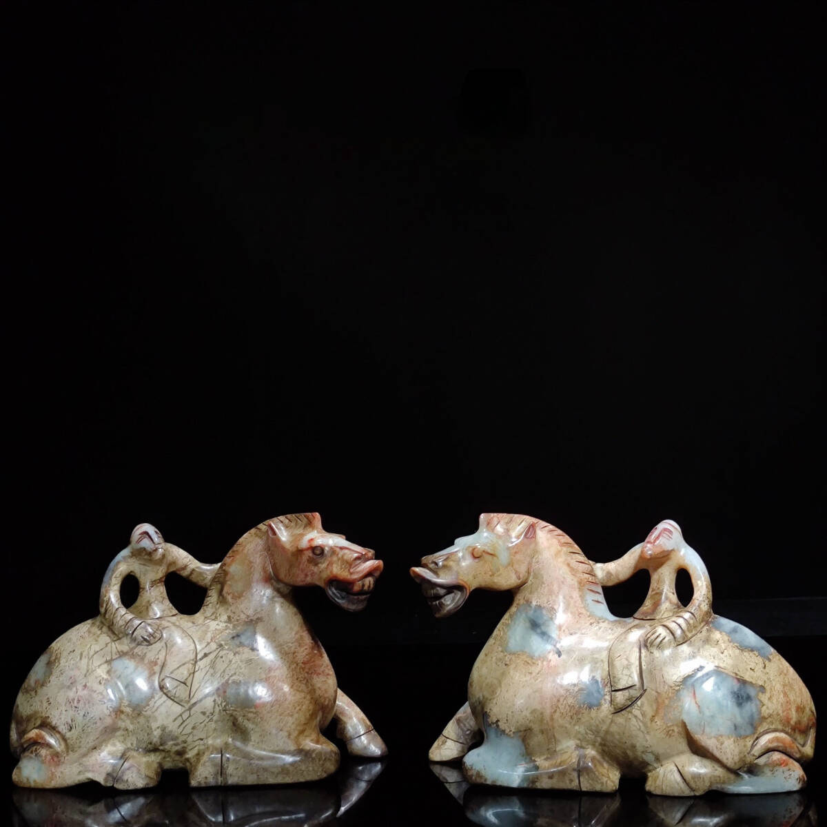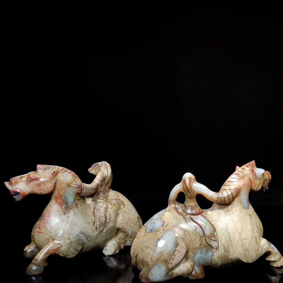 人間国宝 和田玉【和田玉胡人献馬一対です】中国古美術 中国骨董 工芸品 彫刻品 時代物 本物 珍品旧蔵 伝世家珍 | |||