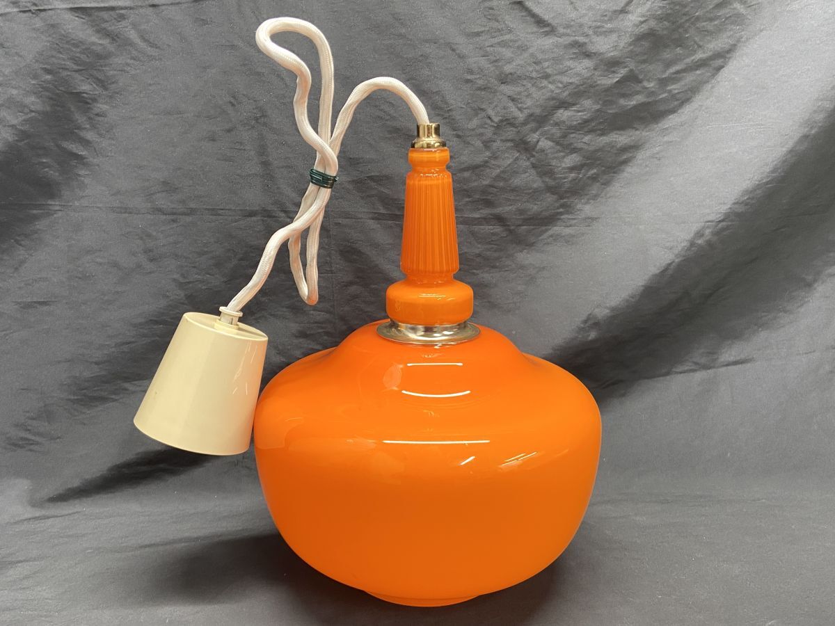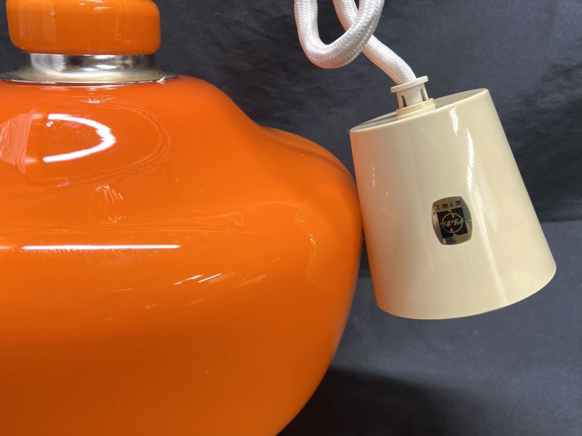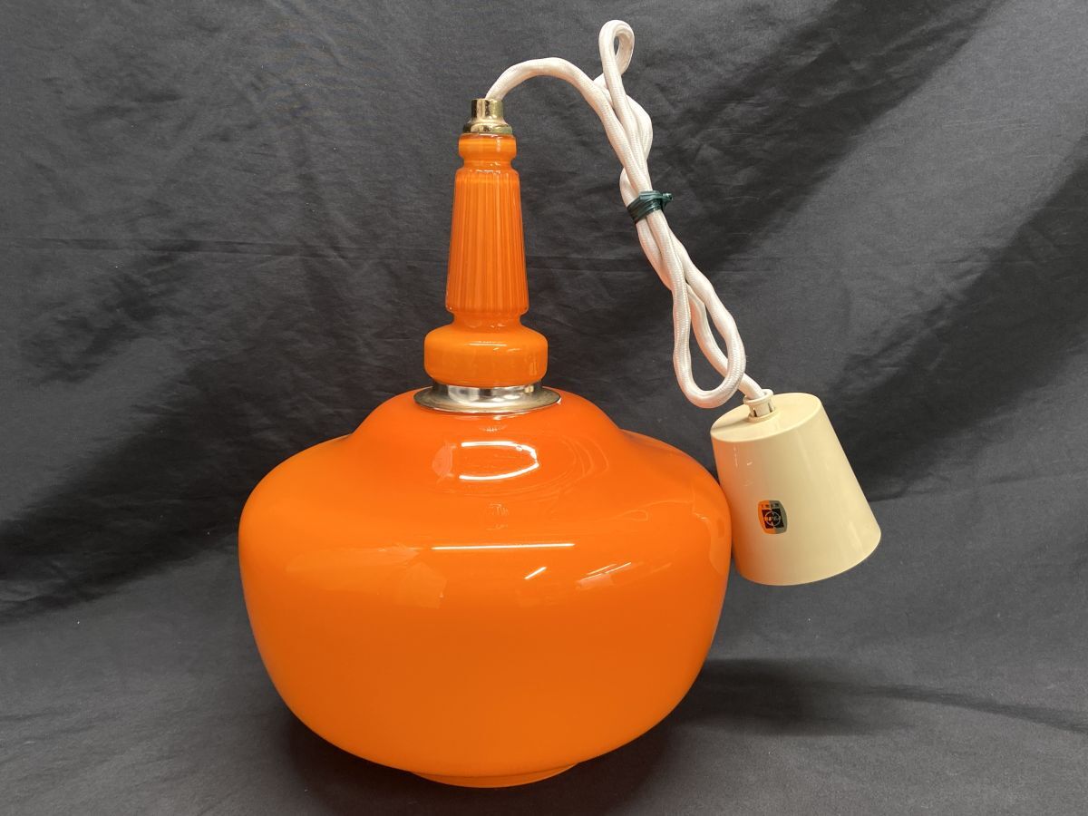 | 【M589】美品 昭和レトロ 照明 ナショナル ペンダントライト ガラスシェード LB16124 オレンジ ヴィンテージ 当時物 吊り下げ 天井 b | ||