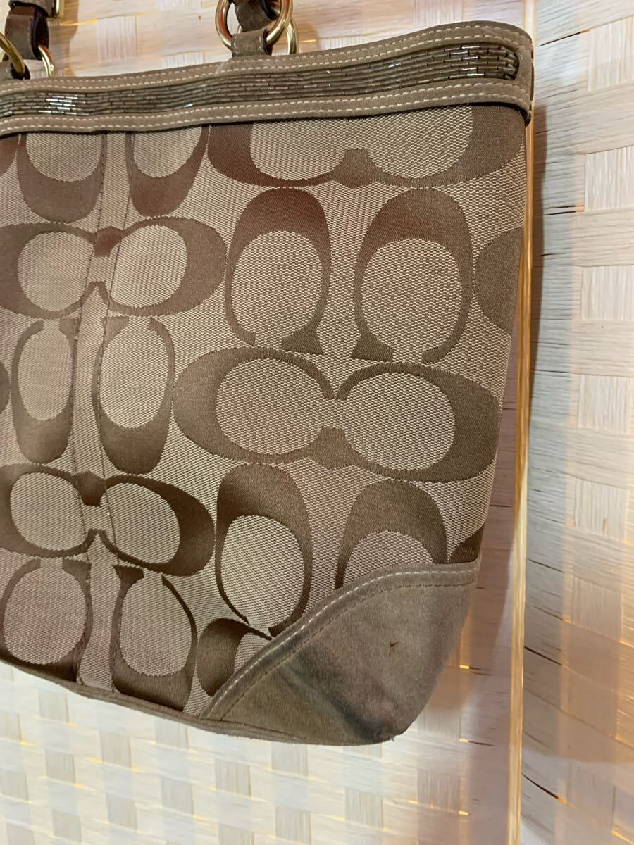 COACH マディソンハンド トートバッグ シグネチャー キャンバス ベージュ スエード G06K-10445 27cm×26.5cm×10cmコーチ BM0007
