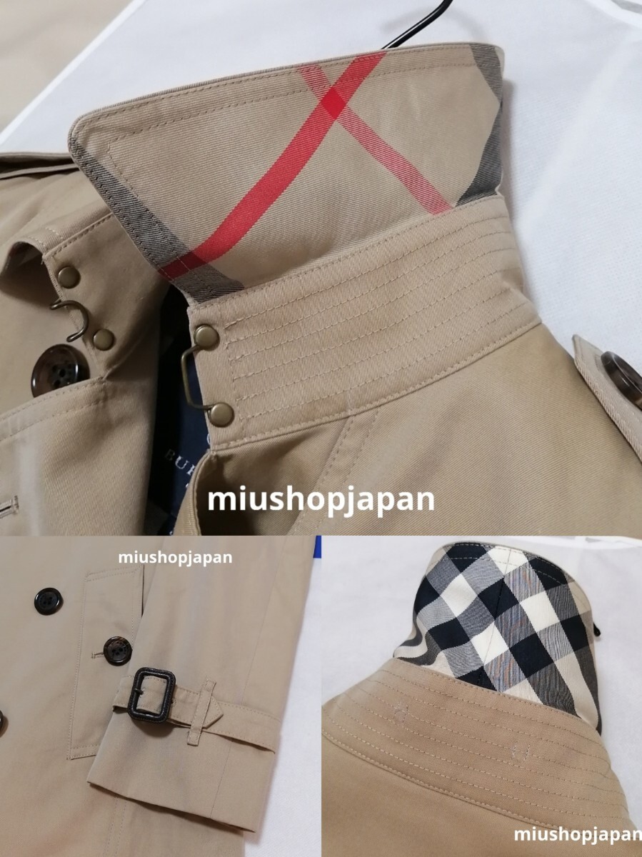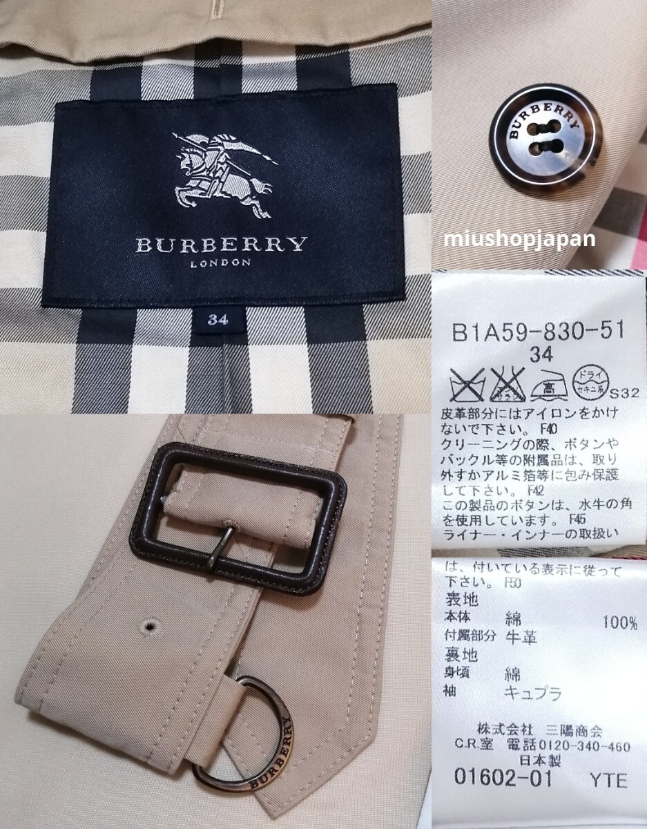ボタンがBURBERRYの表示あり、ベルトは牛革でのお作りです。