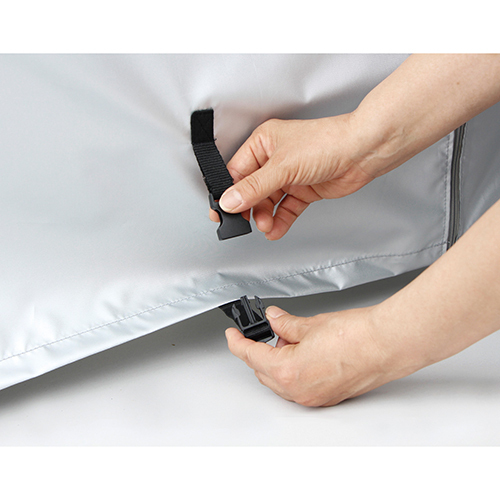 ※注意:火器の近くや高温になる場所では使用しないでください。難燃性はありません。カバーの耐久性は、紫外線の量(特に夏季、炎天下の場合)や、酸性雨などの自然現象及び仕様状況により、かなり異なります。生地には防水加工を施しておりますが、縫製品のため完全防水ではありません。