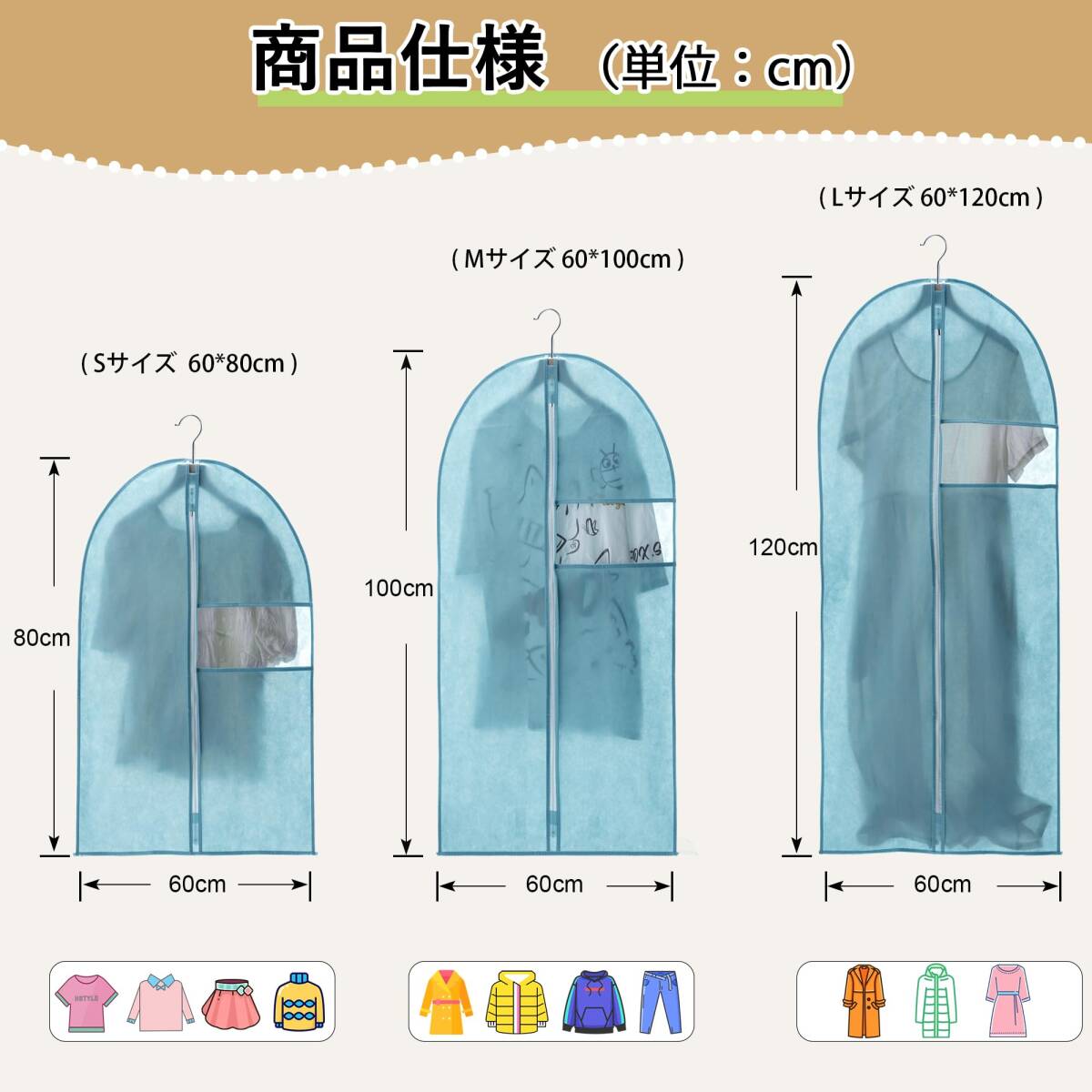 VECELO 衣類カバー 防塵カバー スーツカバー ハンガー 5枚組 ジッパー付き 湿気取り 防汚 衣装カバー 可視窓付き コート ダウンジャケ