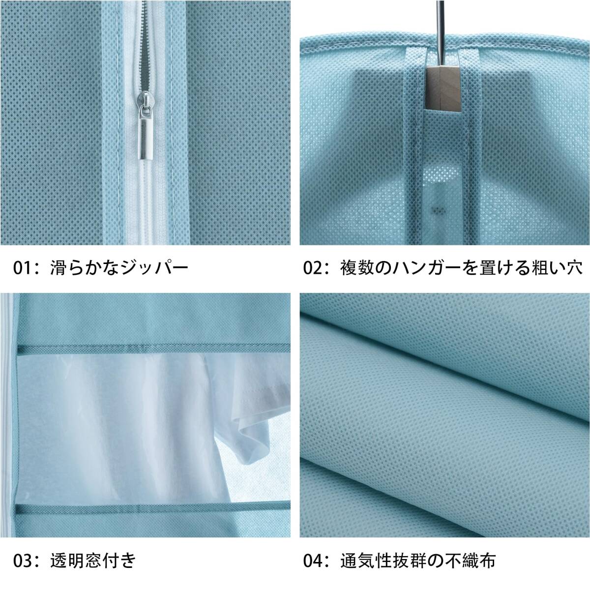 ・【通気性が良い材料】不織布で作られた衣類カバーは衣装を守りながら優れた通気性をお持ちます、内部の湿気を溜めらず、大事な衣装を守ることができます。