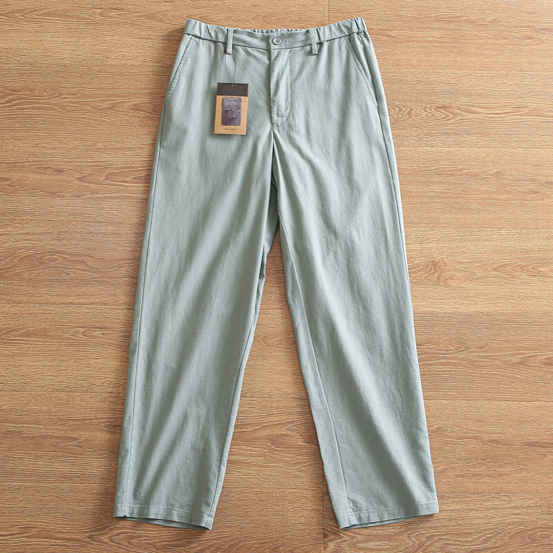 T6923-3XL 緑 新品 リネン コットン イージーパンツ 速乾 涼感 ストレッチ メンズ サマー ロングパンツ ウエストゴム 薄手 春夏 盛夏