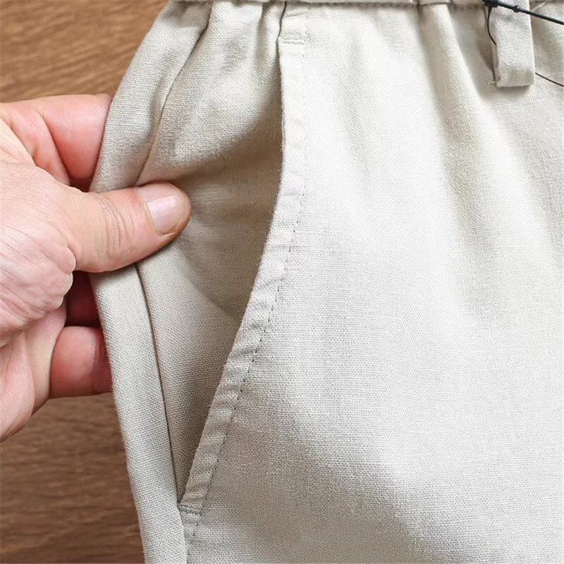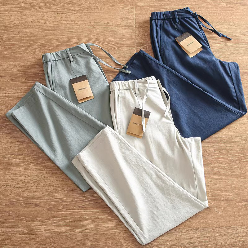 T6923-3XL 緑 新品 リネン コットン イージーパンツ 速乾 通気性 涼感 ストレッチ メンズ サマー  ロングパンツ ウエストゴム  ドローストリング 薄手 春夏 盛夏