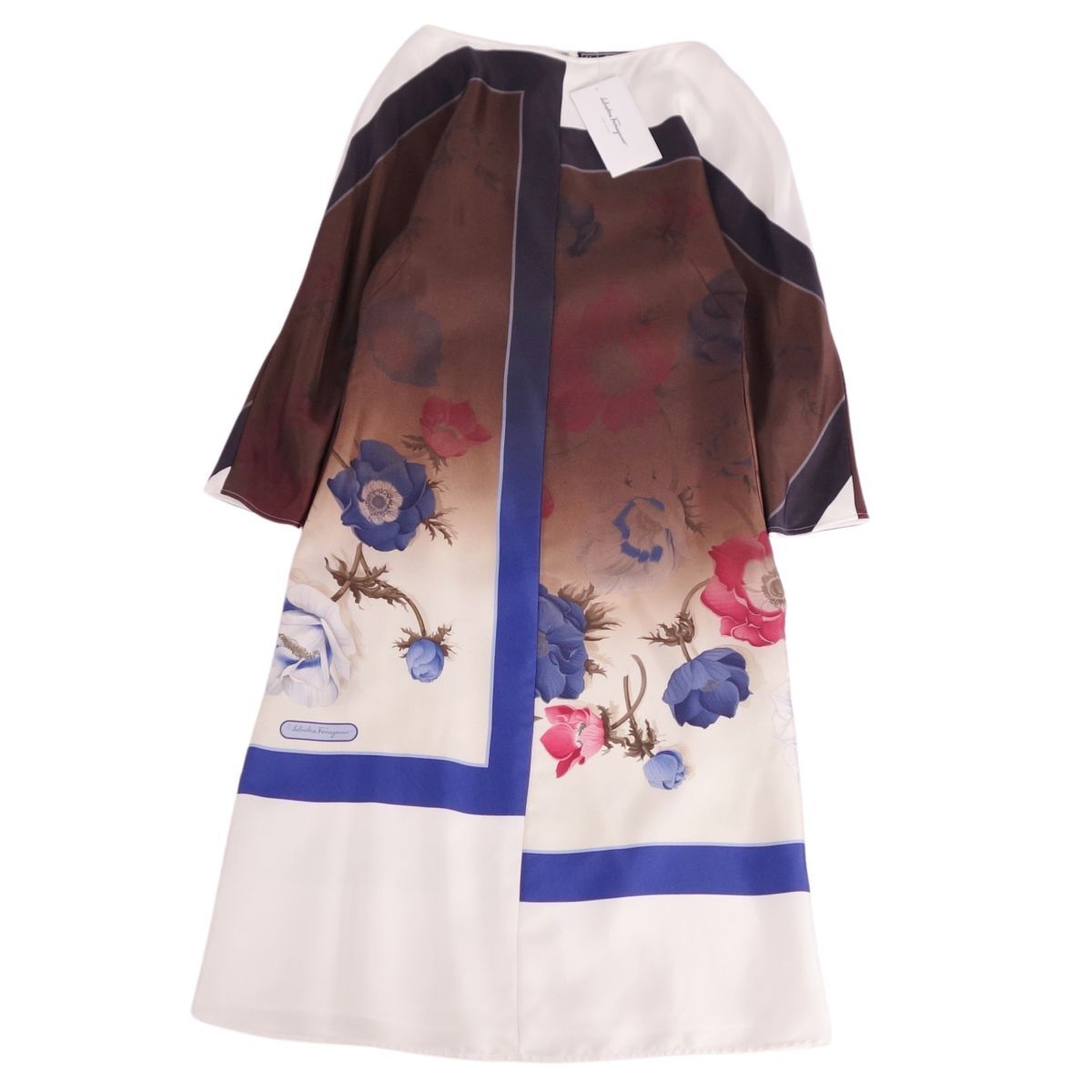 | 未使用 サルヴァトーレ フェラガモ Salvatore Ferragamo ワンピース 長袖 総柄 シルク トップス 38(M相当) マルチカラー |