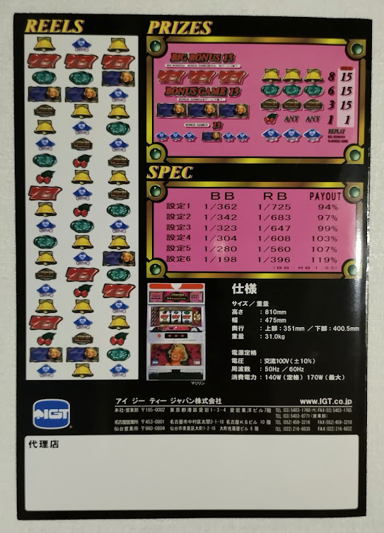 マリリン カタログ ◆ IGT パチスロ 4号機 レア レトロ パンフレット 非売品 同梱発送可