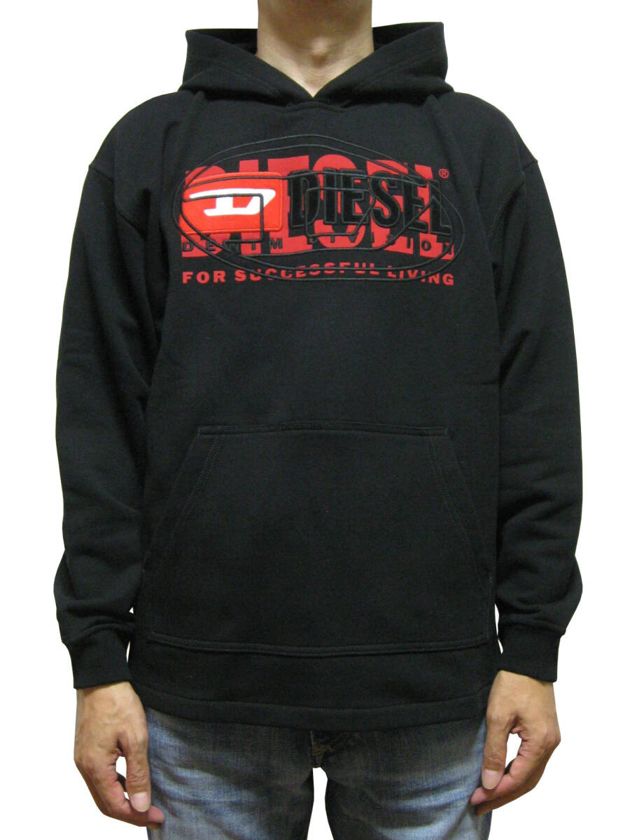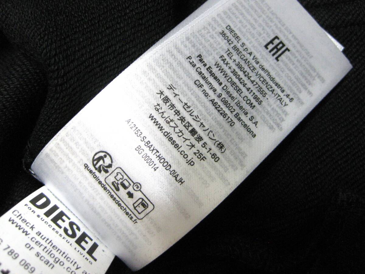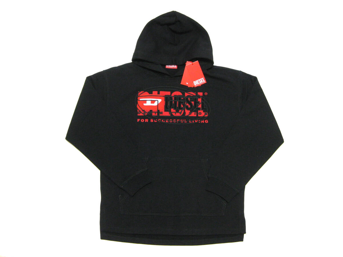 新品 直輸入 DIESEL ディーゼル 3重 レイヤードロゴ 裾スリット入り テールヘム パーカー S-BAXT-HOOD Sサイズ A12153