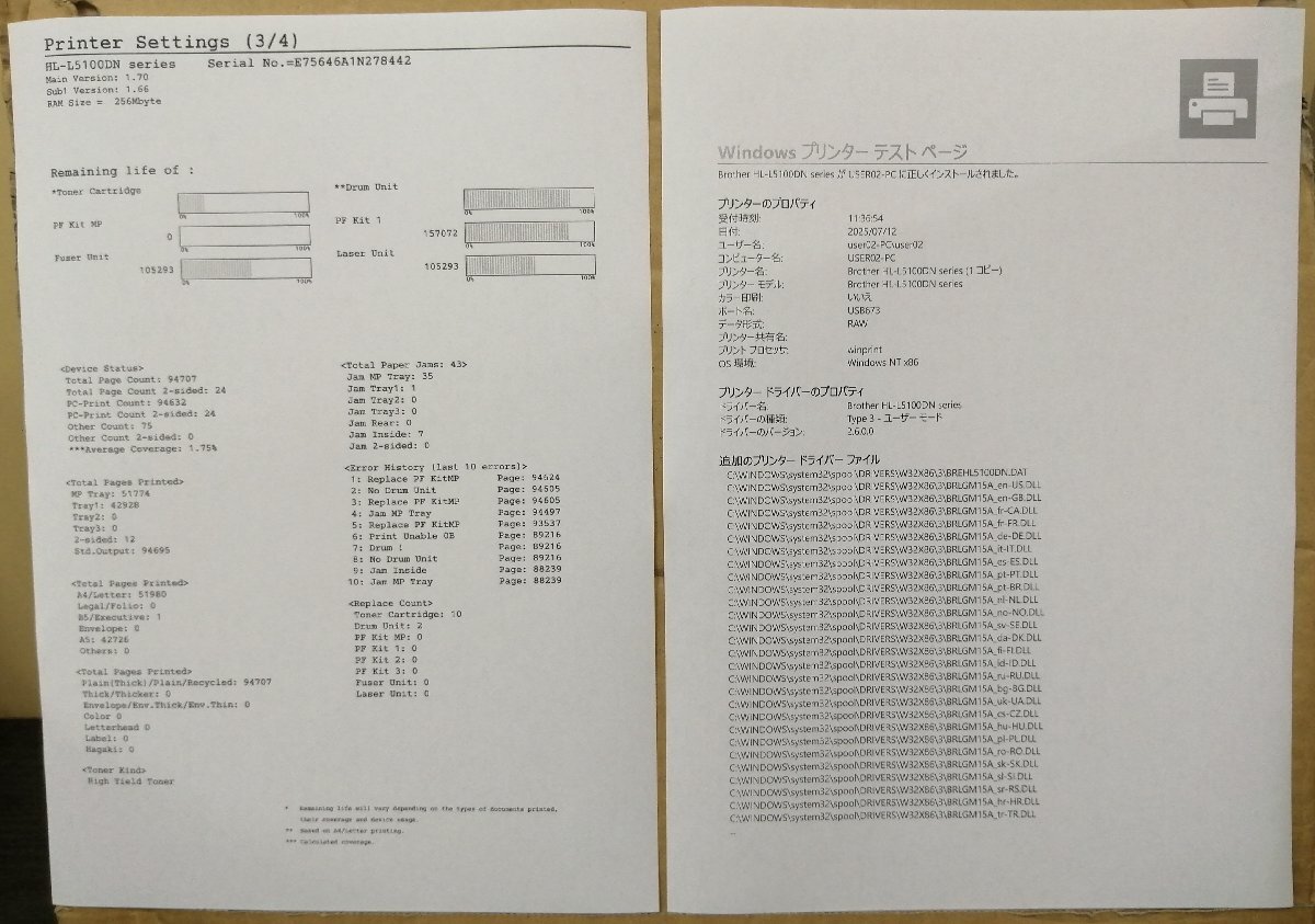 標準用紙トレイ、多目的トレイ印刷動作確認済み。 連続印刷動作確認済み。 自動両面印刷動作確認済み。 USB、LAN動作確認済み。 |