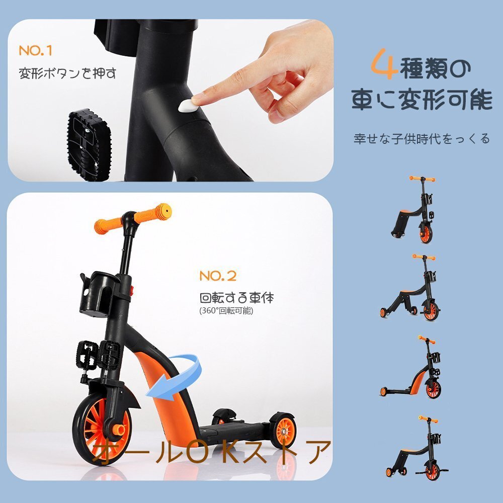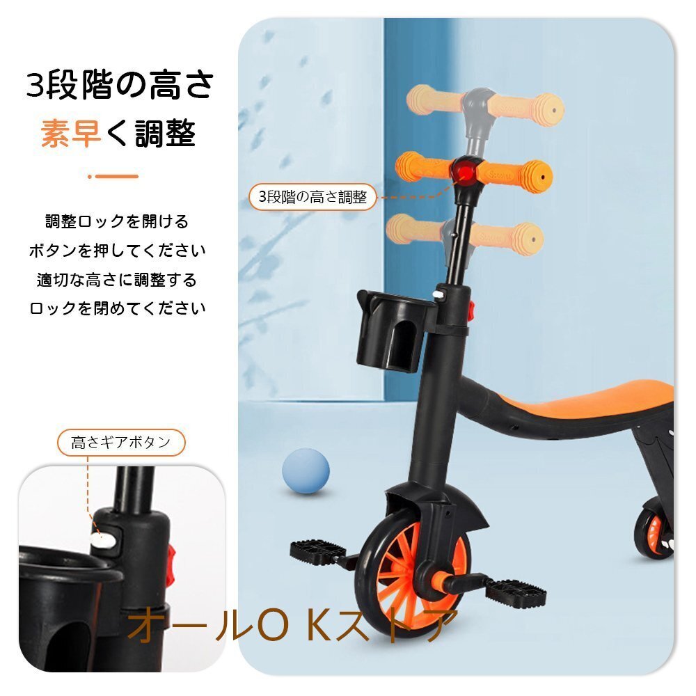 【5WAY】 1.手押し三輪車 2.ペダルなし三輪車 3.ペダルあり三輪車 4.バランスバイク 5.自転車の5WAYでお子様の成長に合わせて長く使える三輪車です。
