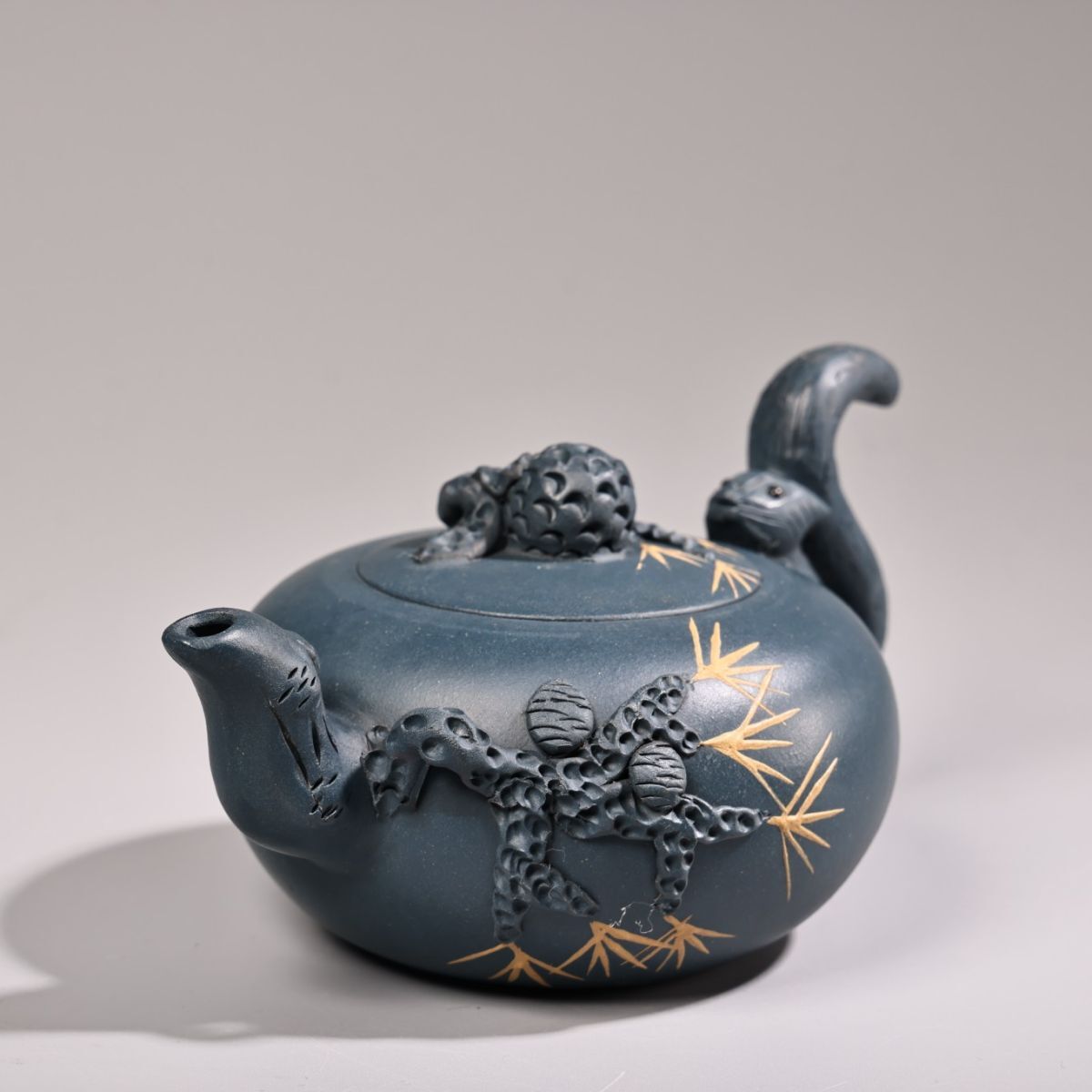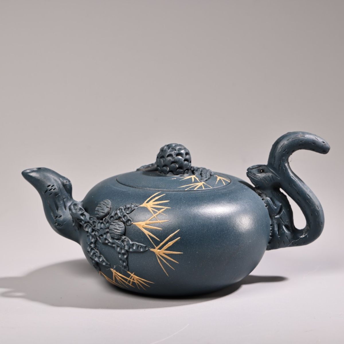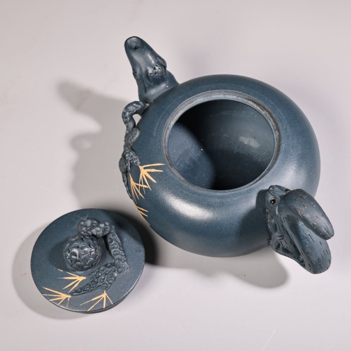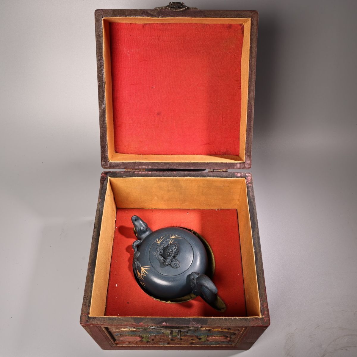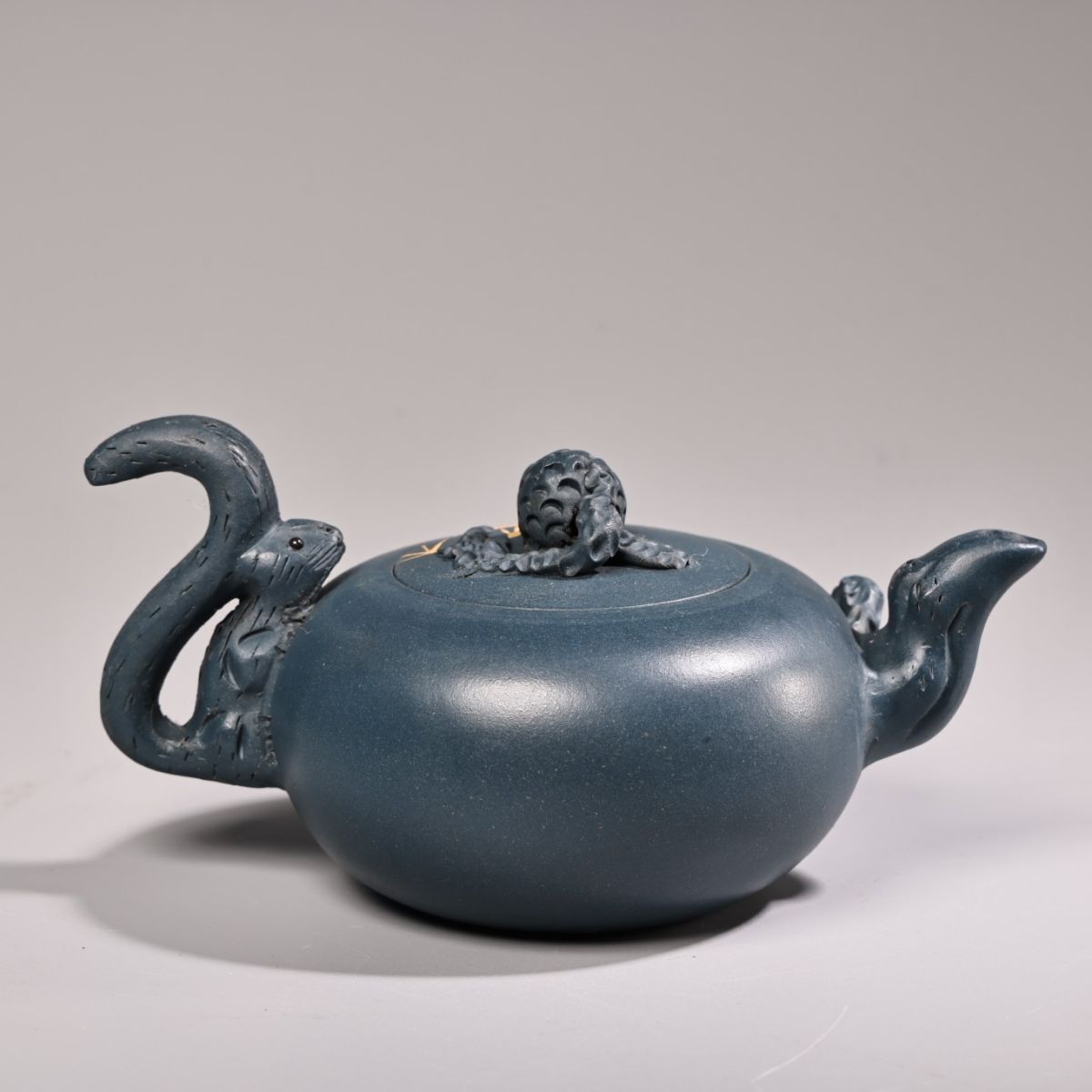 永し 旧家蔵出 底款 品名【長春壺】天青 朱泥 段泥 煎茶道具 急須 単孔口 唐物 紫砂壺 紫砂壷 茶壷 茶壷 極細工 古美術品 中国唐物 A521
