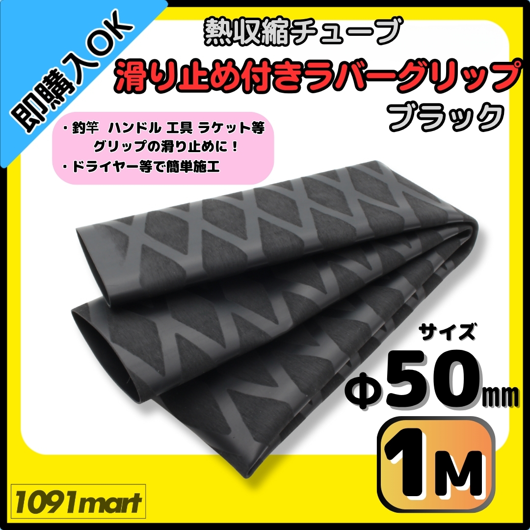 【送料無料】熱収縮チューブ ラバーグリップ Φ50㎜ 100㎝ ブラック 滑り止め加工 グリップの補強に 釣竿 工具 ラケット ハンドルに