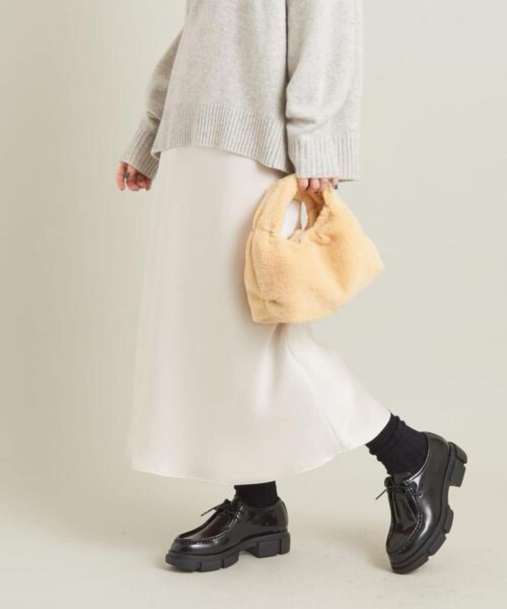 長すぎないミディアム丈なので、ソックスやブーツとの相性◎