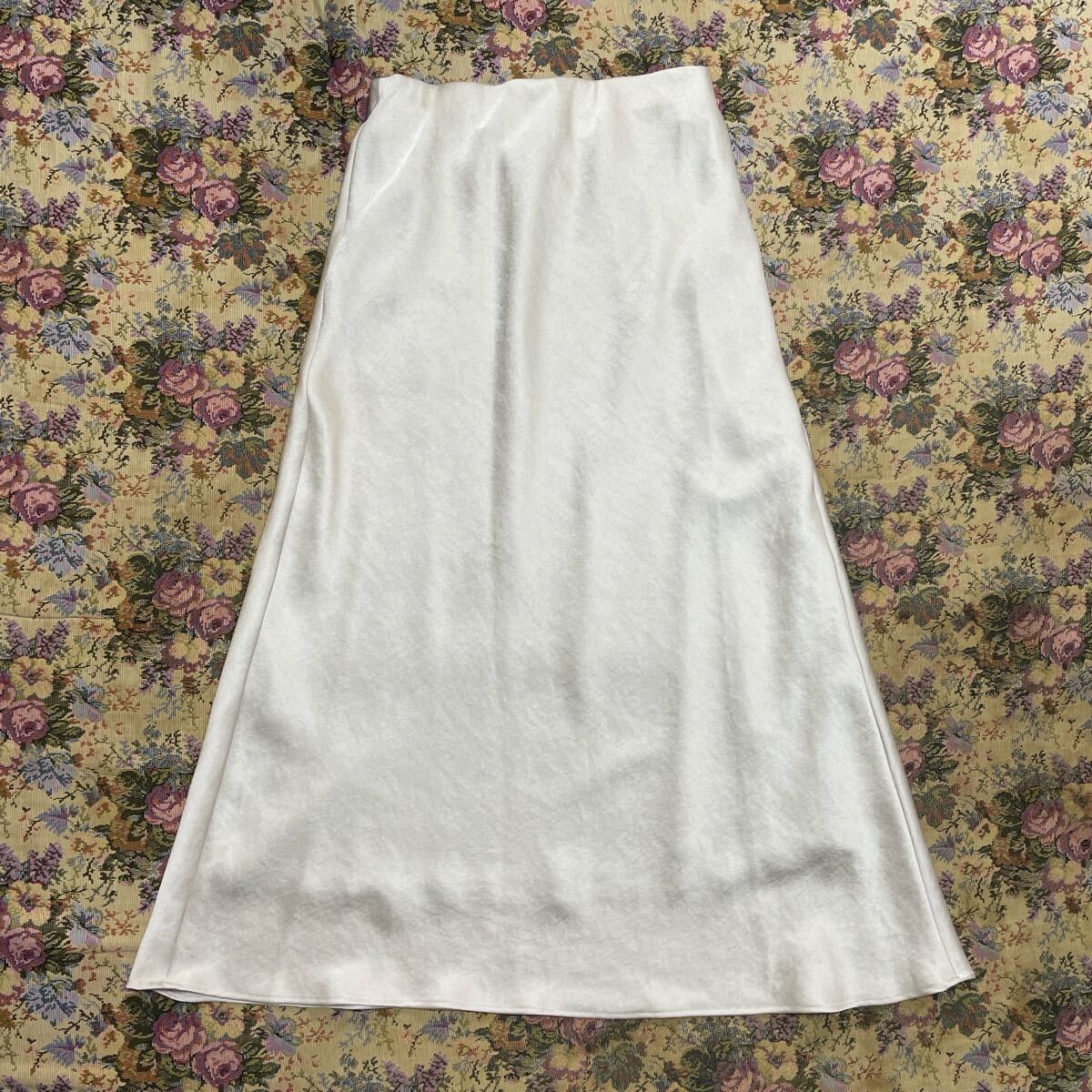 生地をバイアスで取り、ゆるやかなフレアラインで仕上げたマキシスカート。