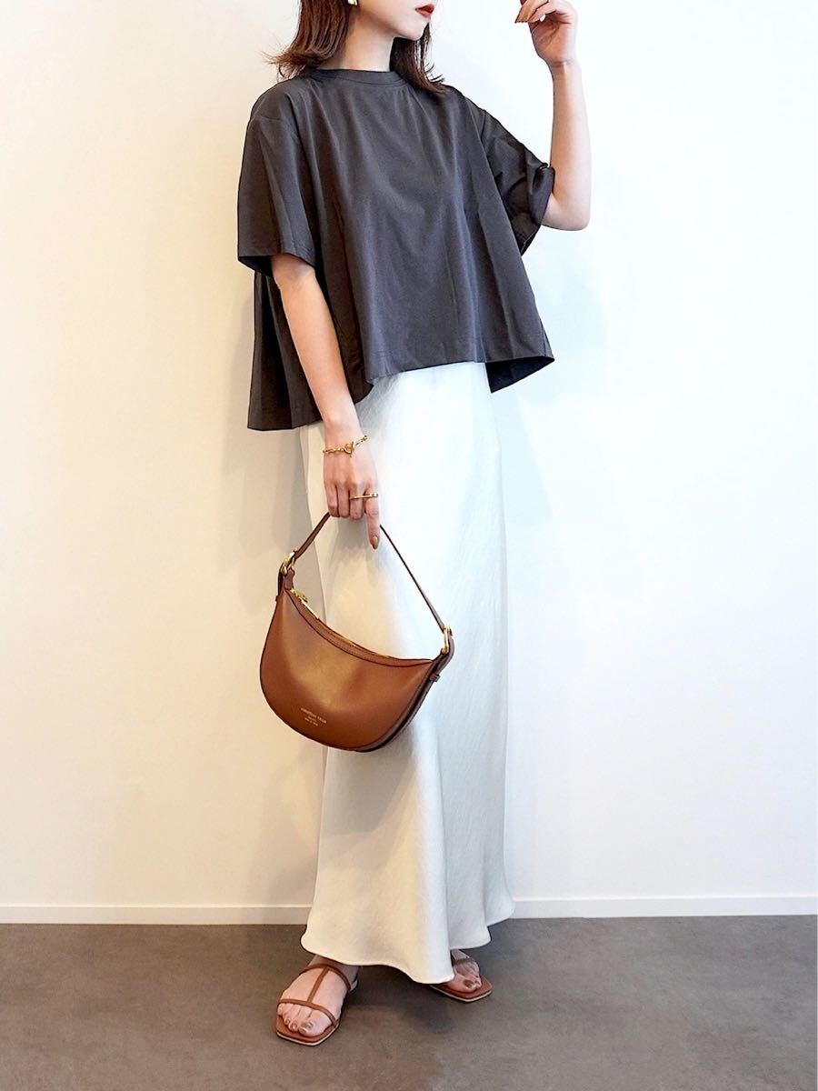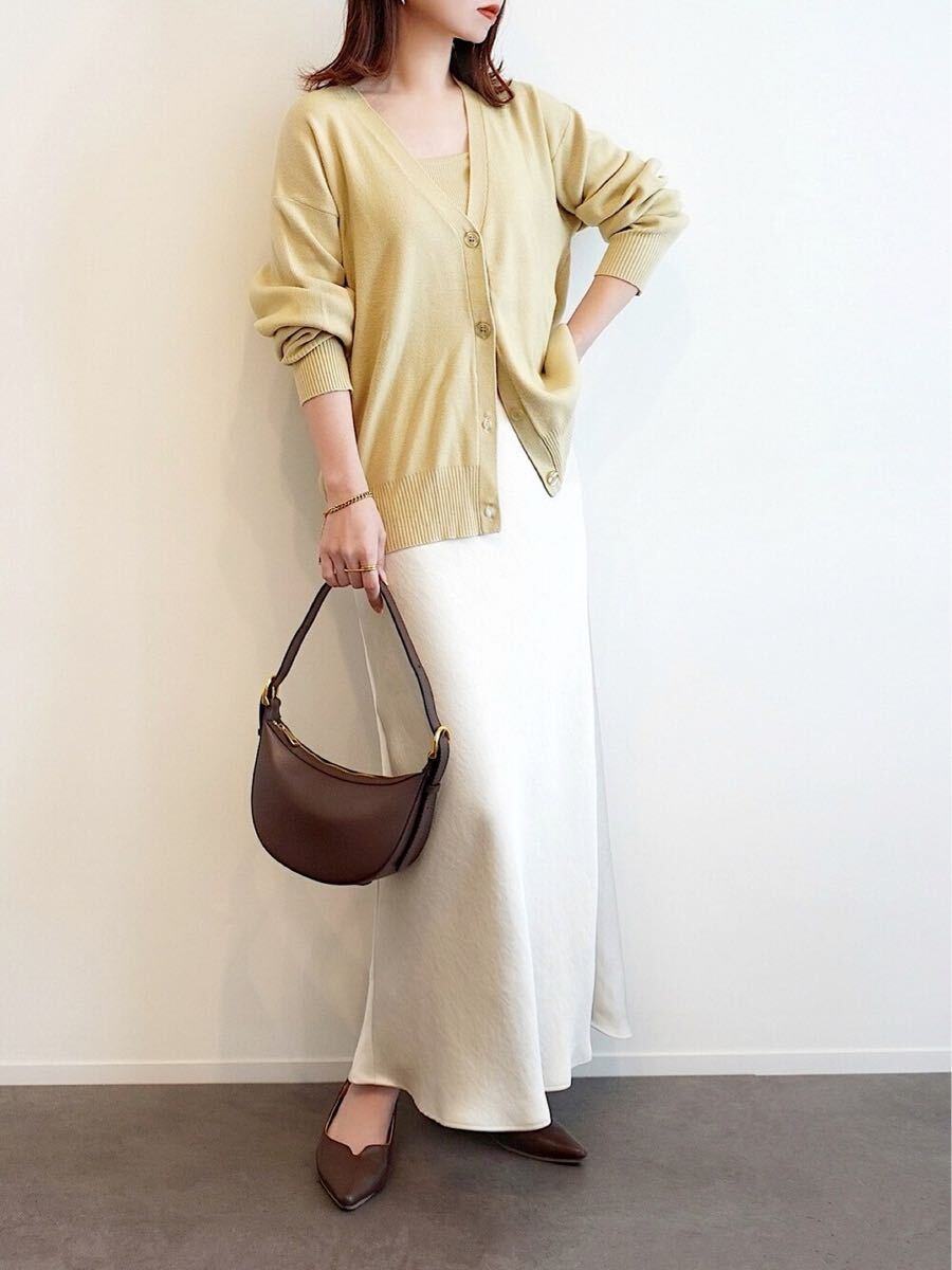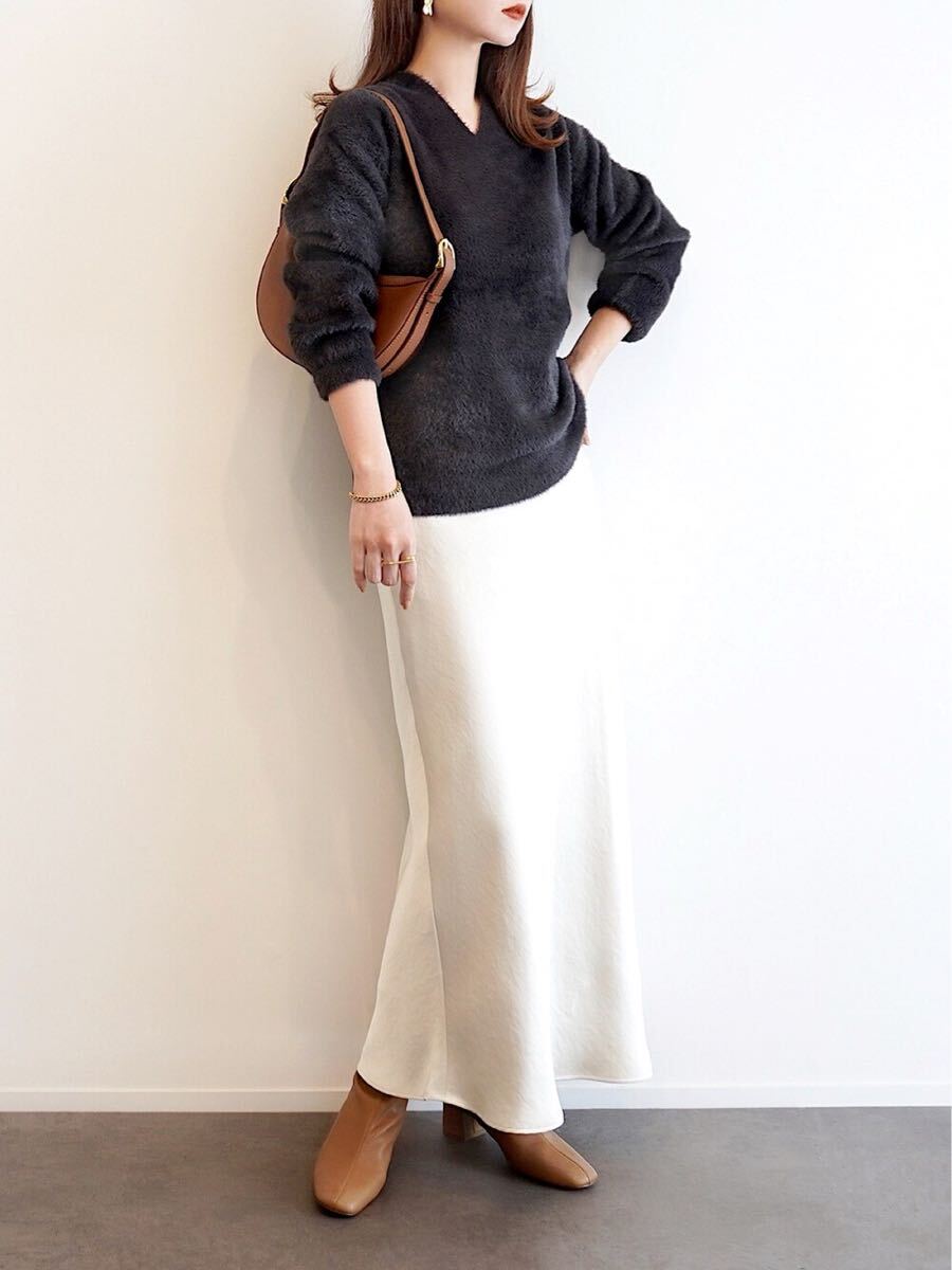 フレアシルエットがフェミニンを薫らせる、マーメイドロングスカート。