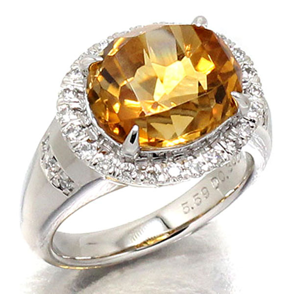プラチナ シトリン ダイヤモンド リング 11号 CI5.59ct D0.38ct Pt900 指輪 宝石 アクセサリー レディース 女性 誕生日 プレゼント