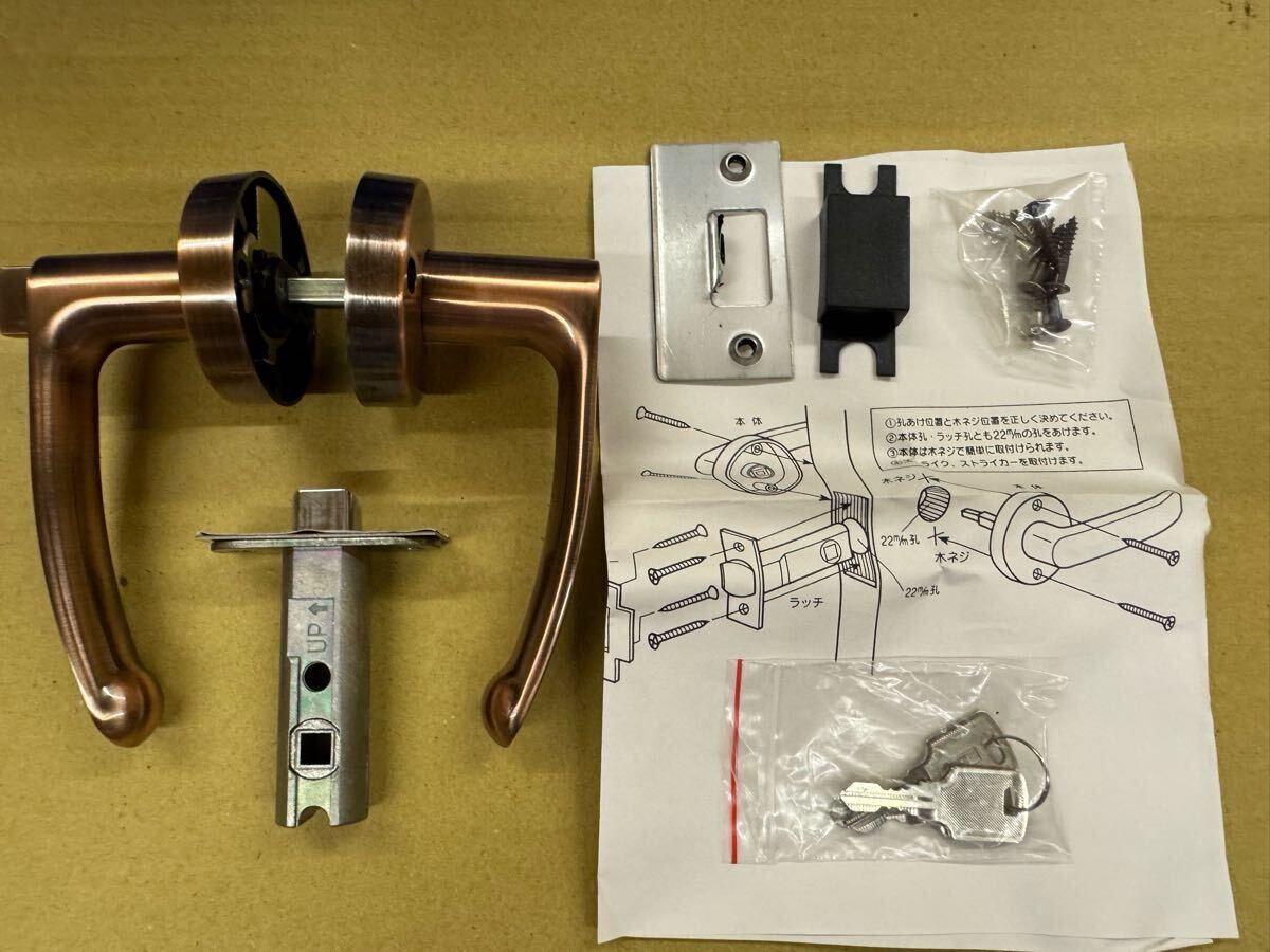 ドアレバーハンドル 鍵付錠 ブロンズ色 未使用品となります。