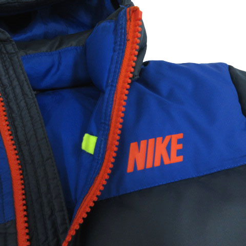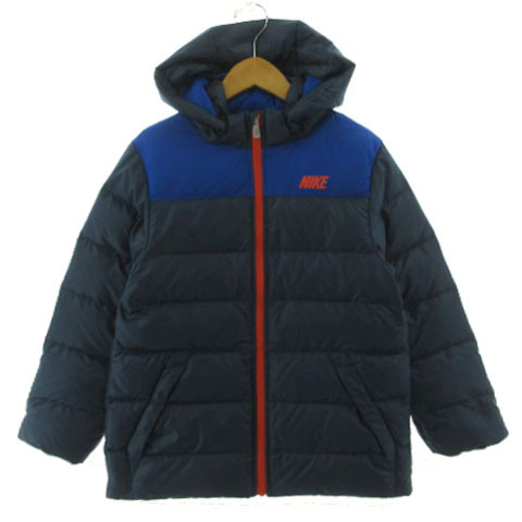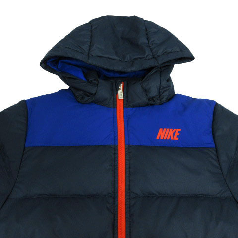 ナイキ NIKE ジュニア ダウンジャケット 546190-467 フード ロゴプリント ジップアップ 配色 ネイビー系 紺系 ブルー 青 145/72 M