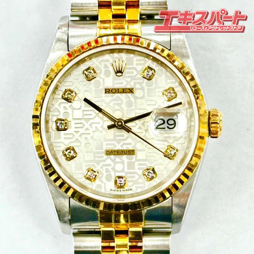 ロレックス デイトジャスト 16233G コンビ 10Pダイヤ 彫り コンピューター SS/YG メンズ腕時計 自動巻き Y番 36mm ROLEX 平塚店