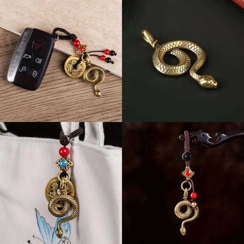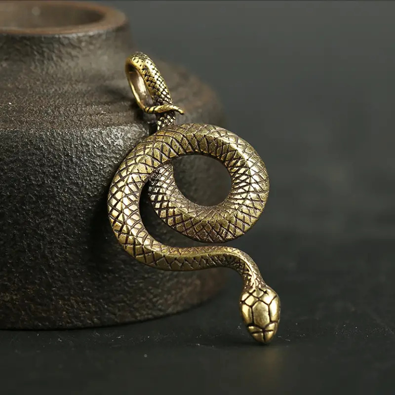 新品 ヘビ 蛇 真鍮 ネックレストップ 十二支 キーリング ペンダント アクセサリ DIY カスタム キーホルダー 送料無料