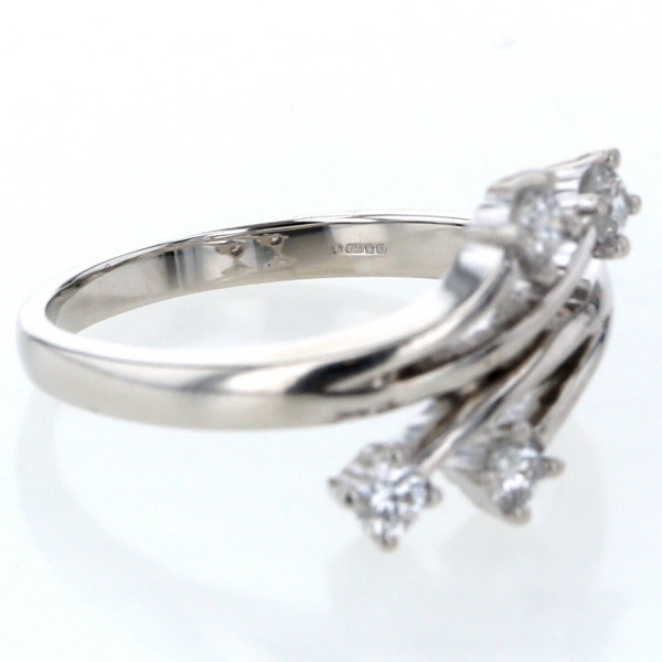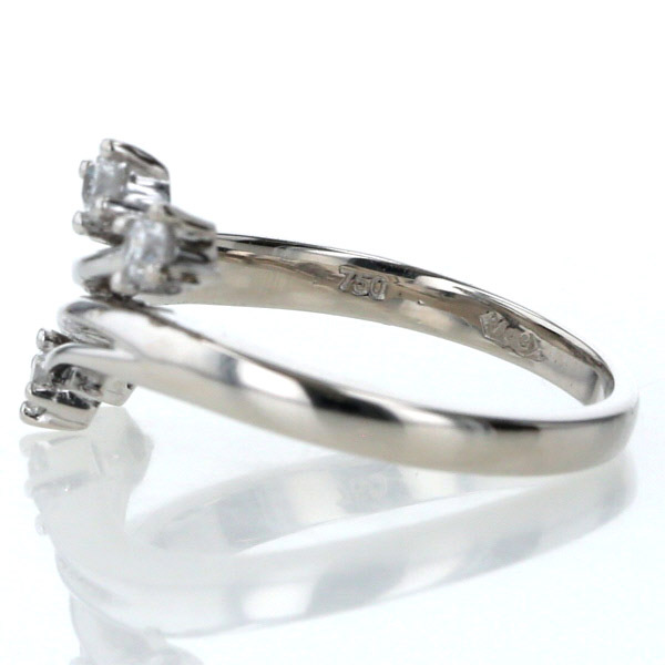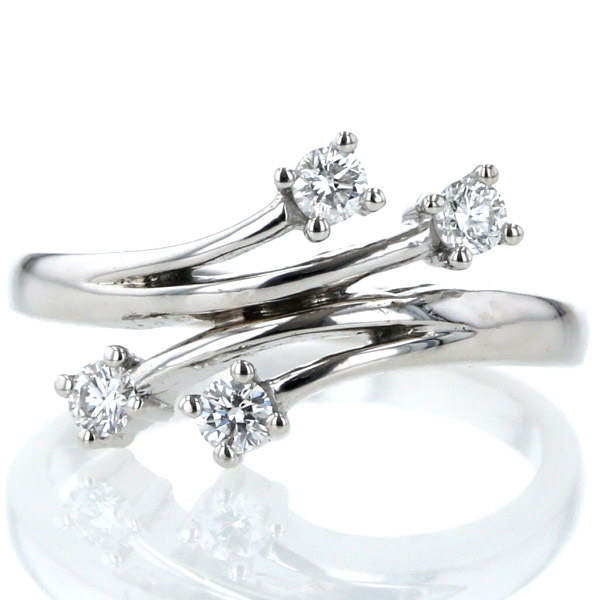 | 商品紹介 | 白く美しい輝きを放つホワイトゴールドリングは、貴女のお手元を華やかなに引き立てます。透明度高いダイヤモンドが華やかです。 |