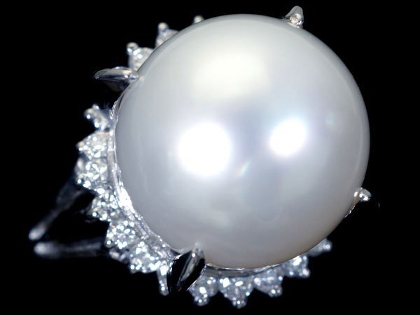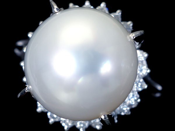 美しい純白の艶と照り放つ良質南洋白蝶真珠12.1mm珠&良質ダイヤモンド総計0.36ctを素敵に宝飾した、高級Pt900リングを激安価格で特別大放出致します!