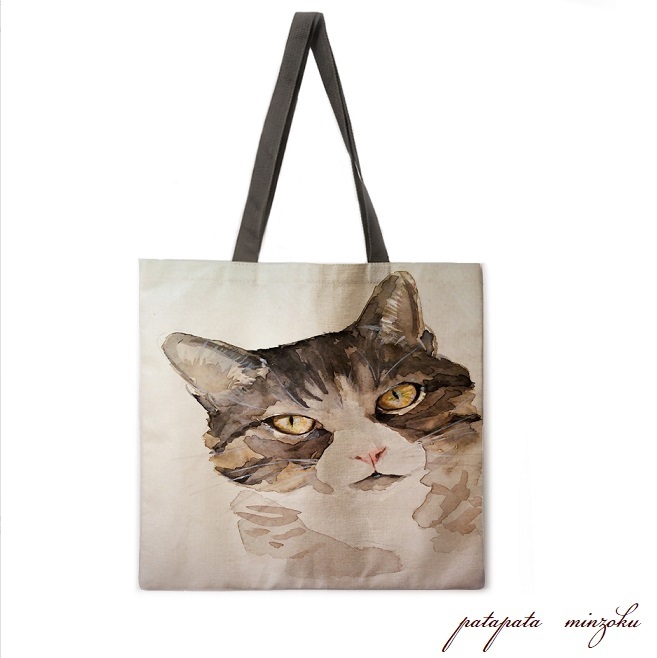 サバトラ 猫 トートバッグ エコバッグ 水彩画風 雑貨 パタミン 小物 バッグ 猫 ネコ ねこ