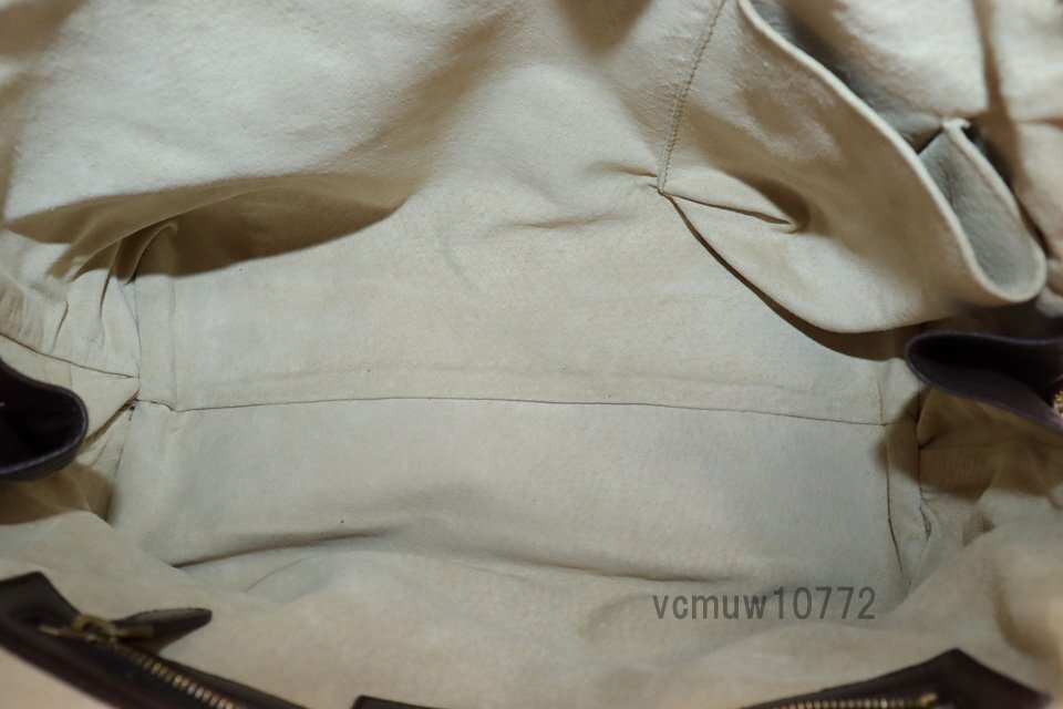 中古ですので新品と比較してすれ、小傷、色むら、若干の型崩れ、使用に問題ないレベルの糸ほつれ、金具にくすみ等ございますが写真の通りコンディション良好です。