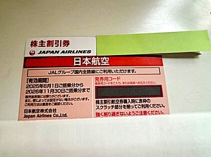 「日本航空株主優待のご案内 割引券」冊子もお付けいたします。(有効期限がありますのでお気を付けください)