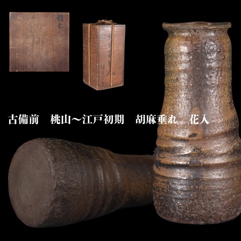 | 商品説明 | 商品名:コレクター品 桃山~江戸初期 胡麻垂れ 花入 本物保証 付属品:時代箱あり。 サイズ:高さ23cm、口径8,2cm、高台10cm。 状態:口縁に直しがございます。 |