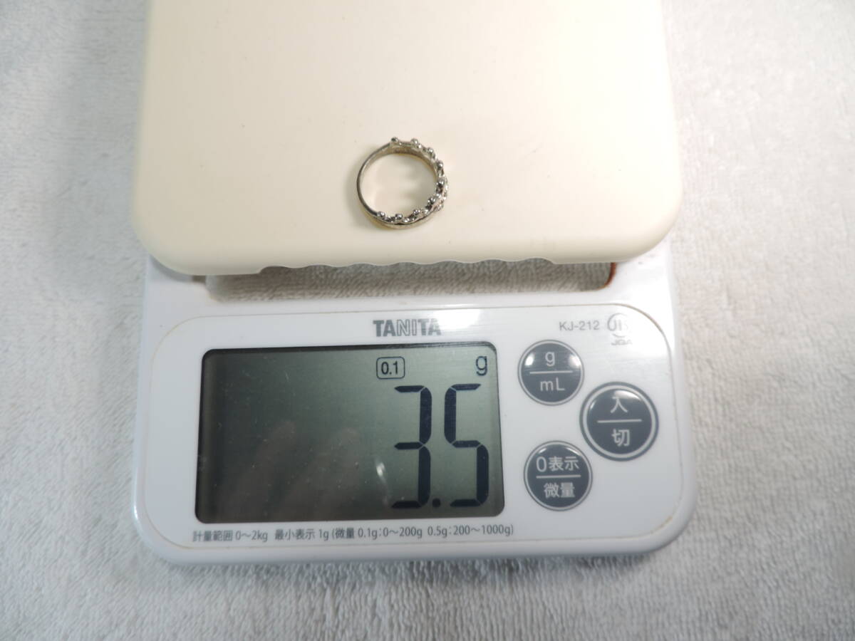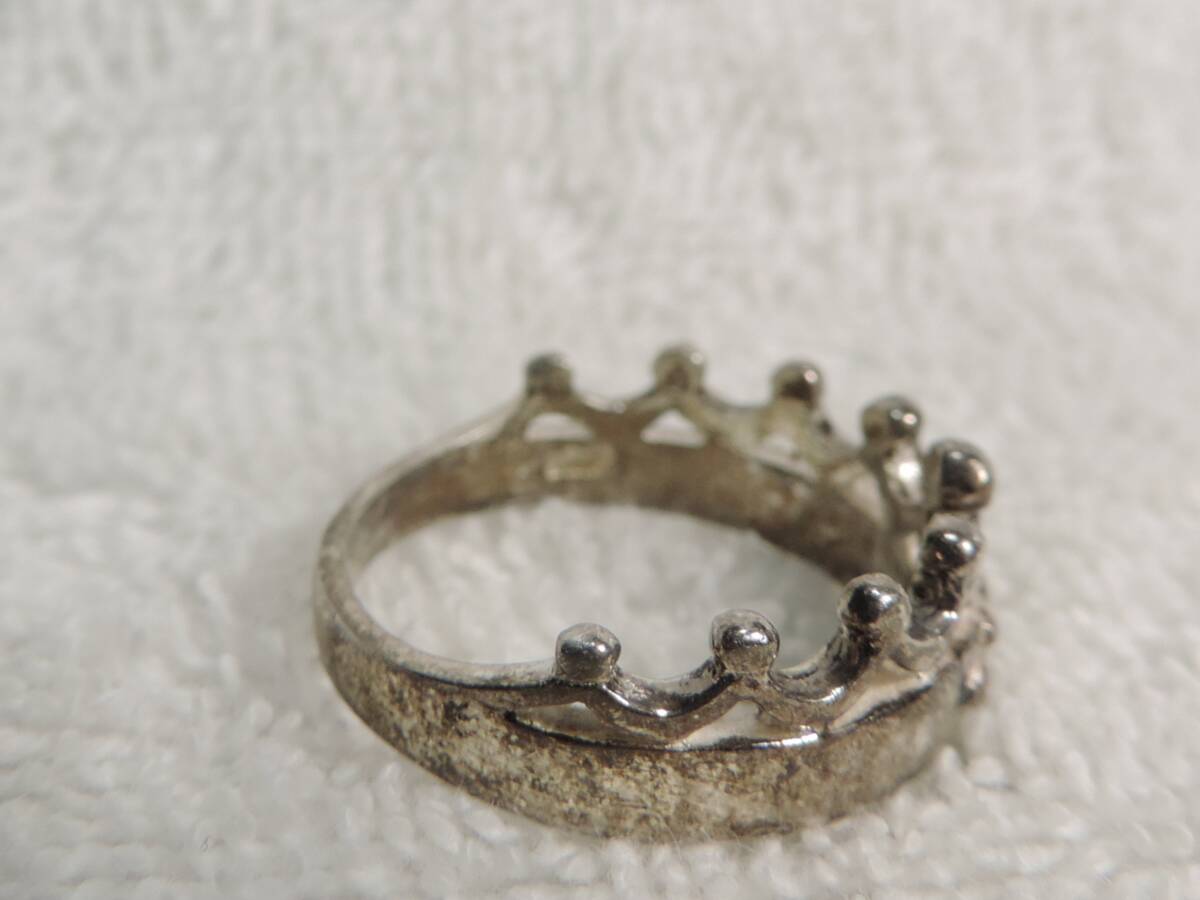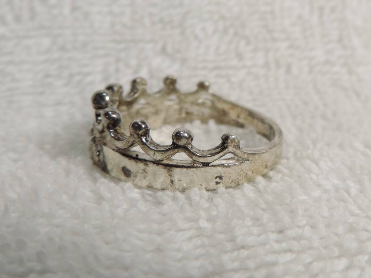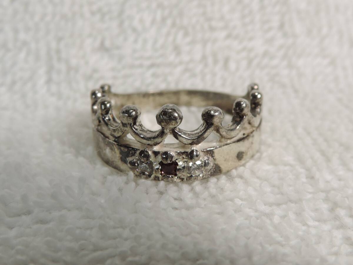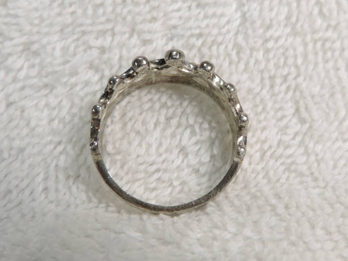 宝石付き・ヴィンテージシルバー925刻印有りレディース指輪クラウンデザインリング・13号・3.5g
