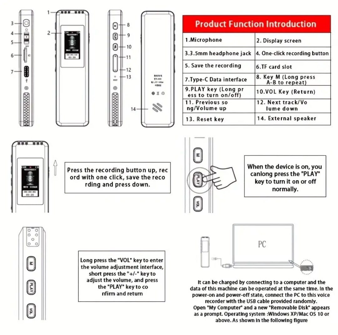 GYIOEUPT デジタルレコーダー、音声操作対応、スピーカー付き、USB充電機能搭載、会議録取やジャーナリスト・学生向けに最適