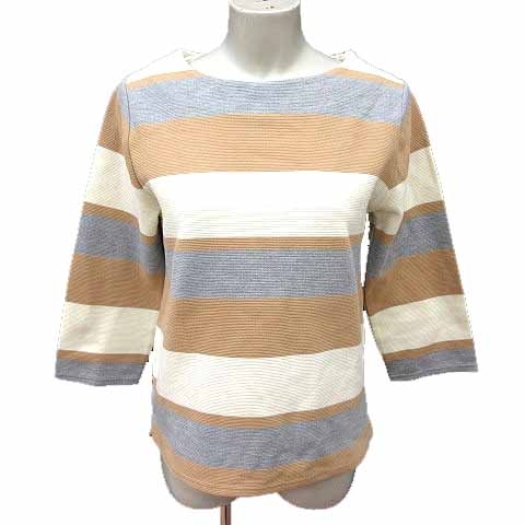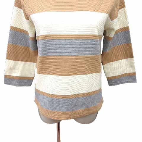 オフオン ofuon カットソー ボーダー 七分袖 40 L 白 ホワイト 茶 ブラウン グレー /YK レディース