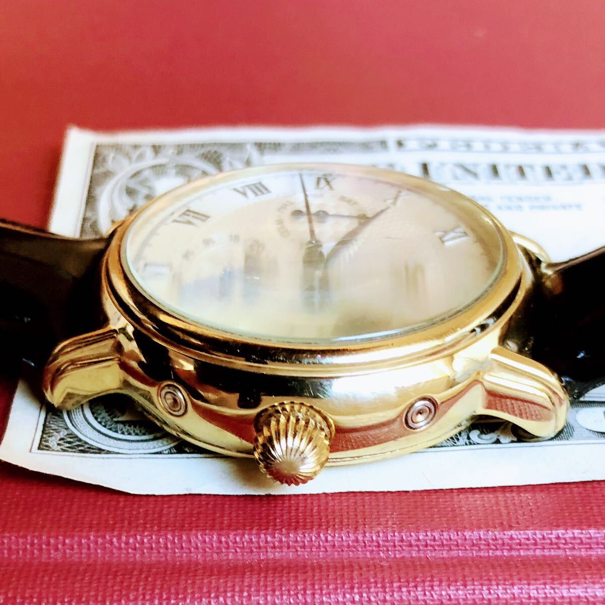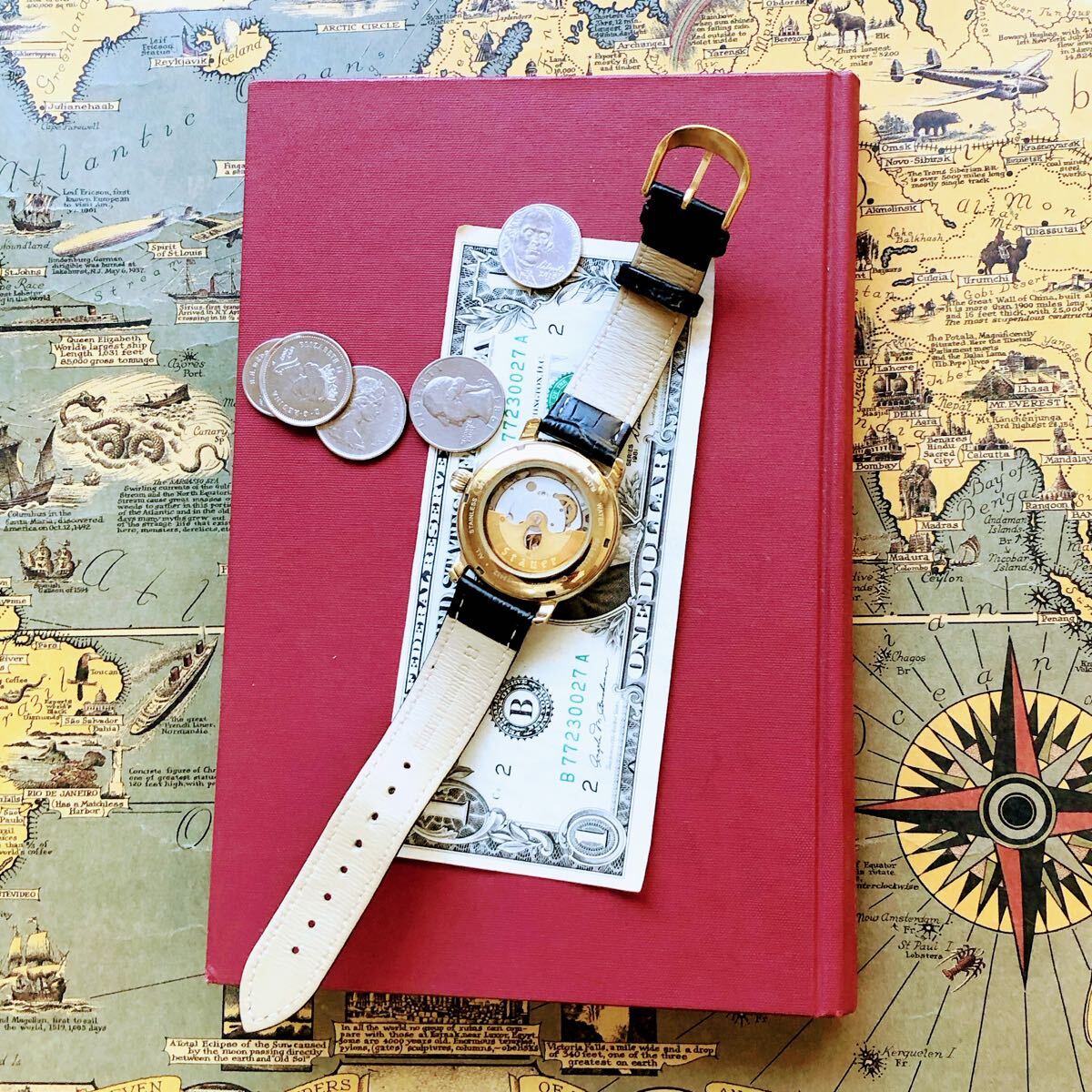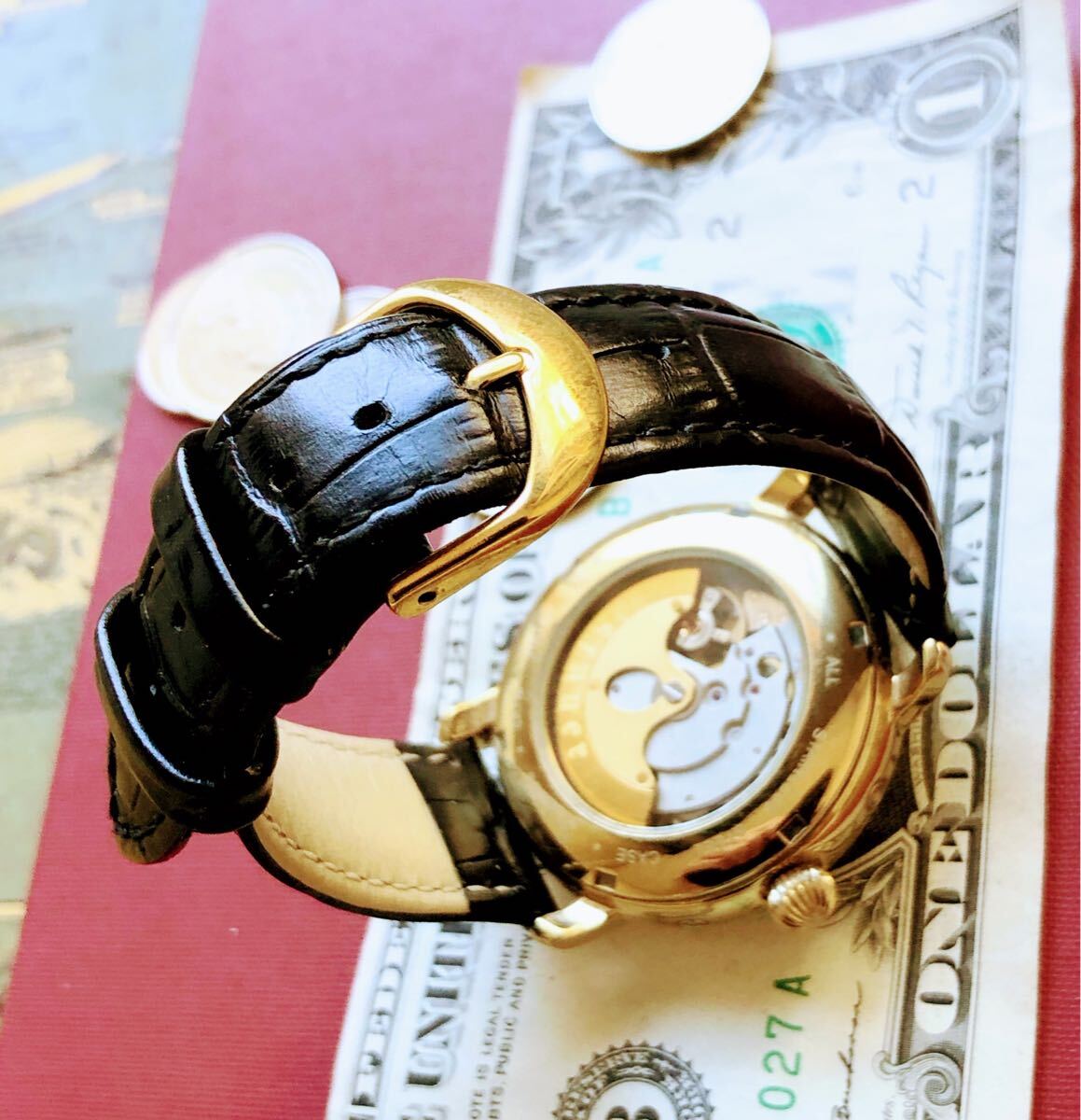 ムーンフェイズは大変人気でお洒落です。ベルトに少しだけ使用感がありますが綺麗なほうだと思います。 文字盤の各窓には日にち、曜日、月の位置が表示がされています。