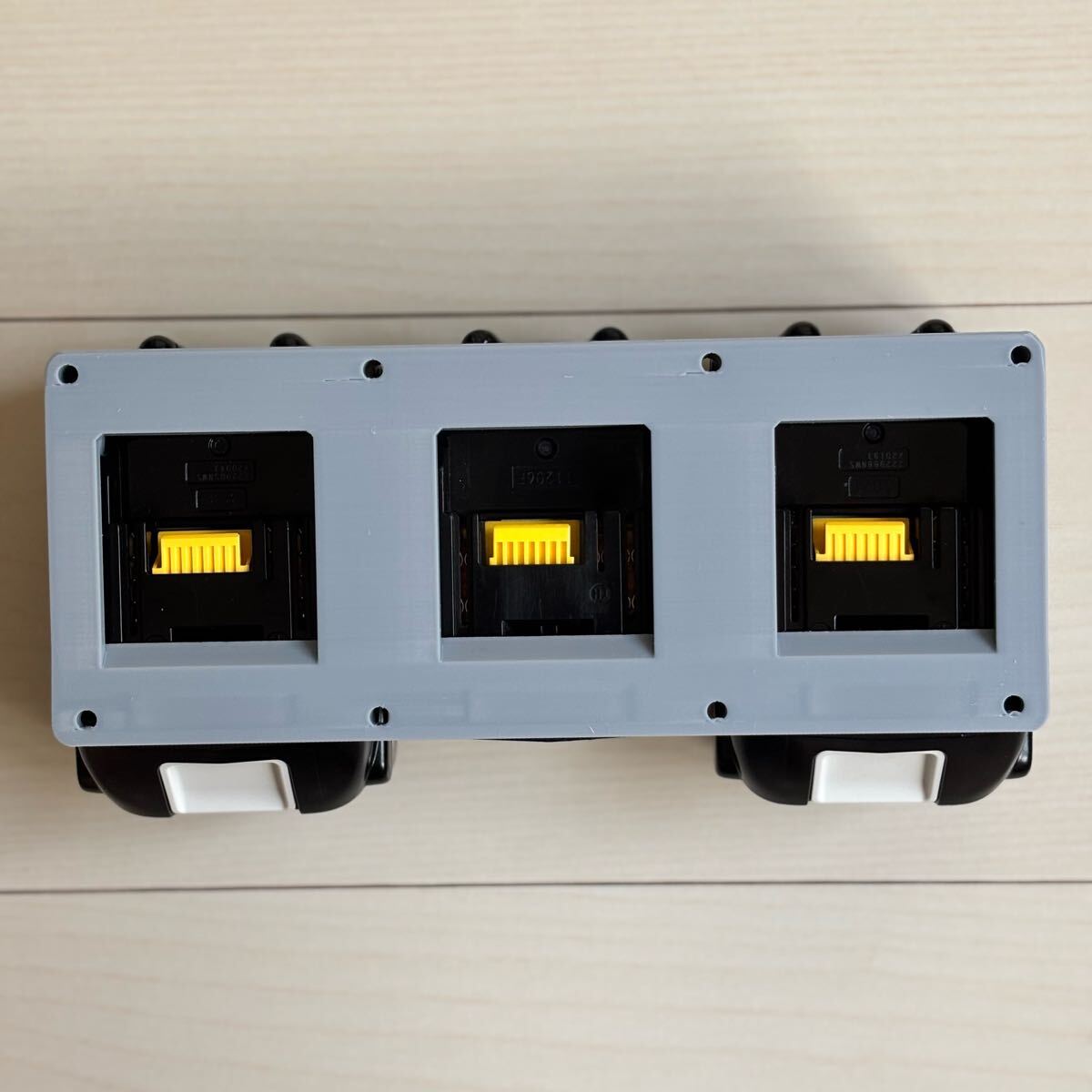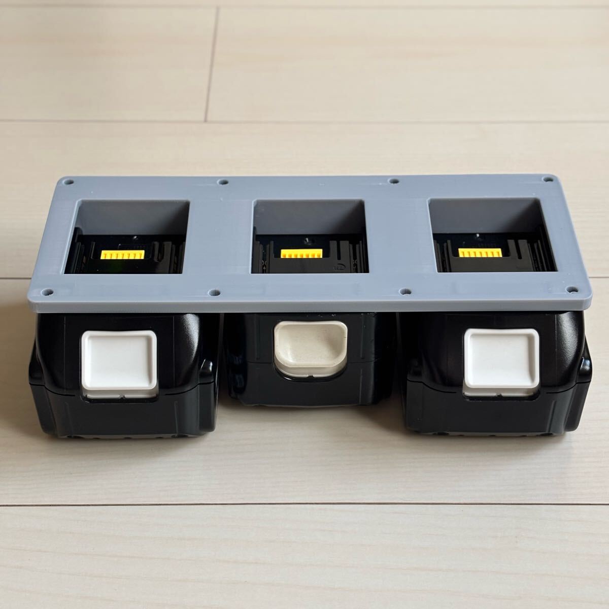 マキタの充電式バッテリー最大3個を、壁やボード裏に取り付けできる、ロック対応のバッテリーホルダーです。