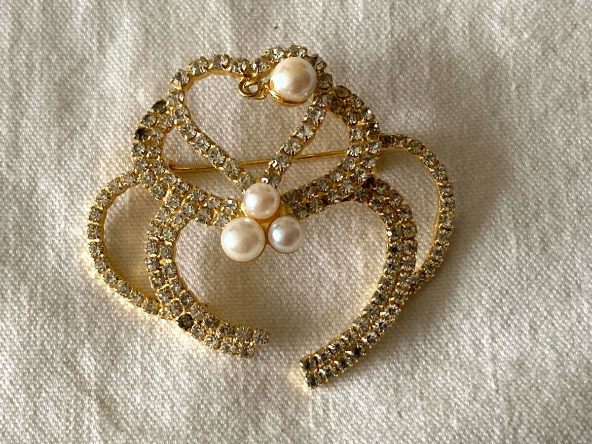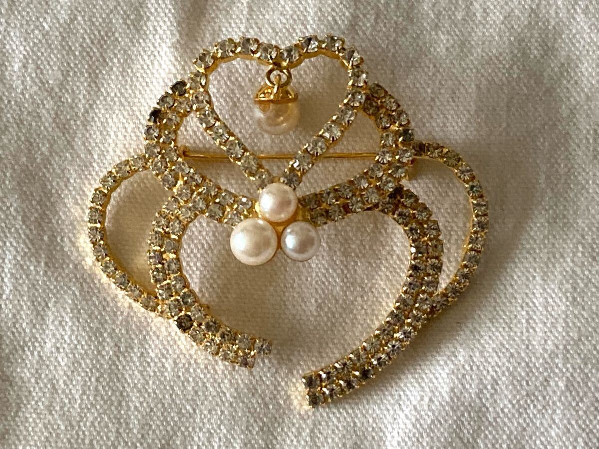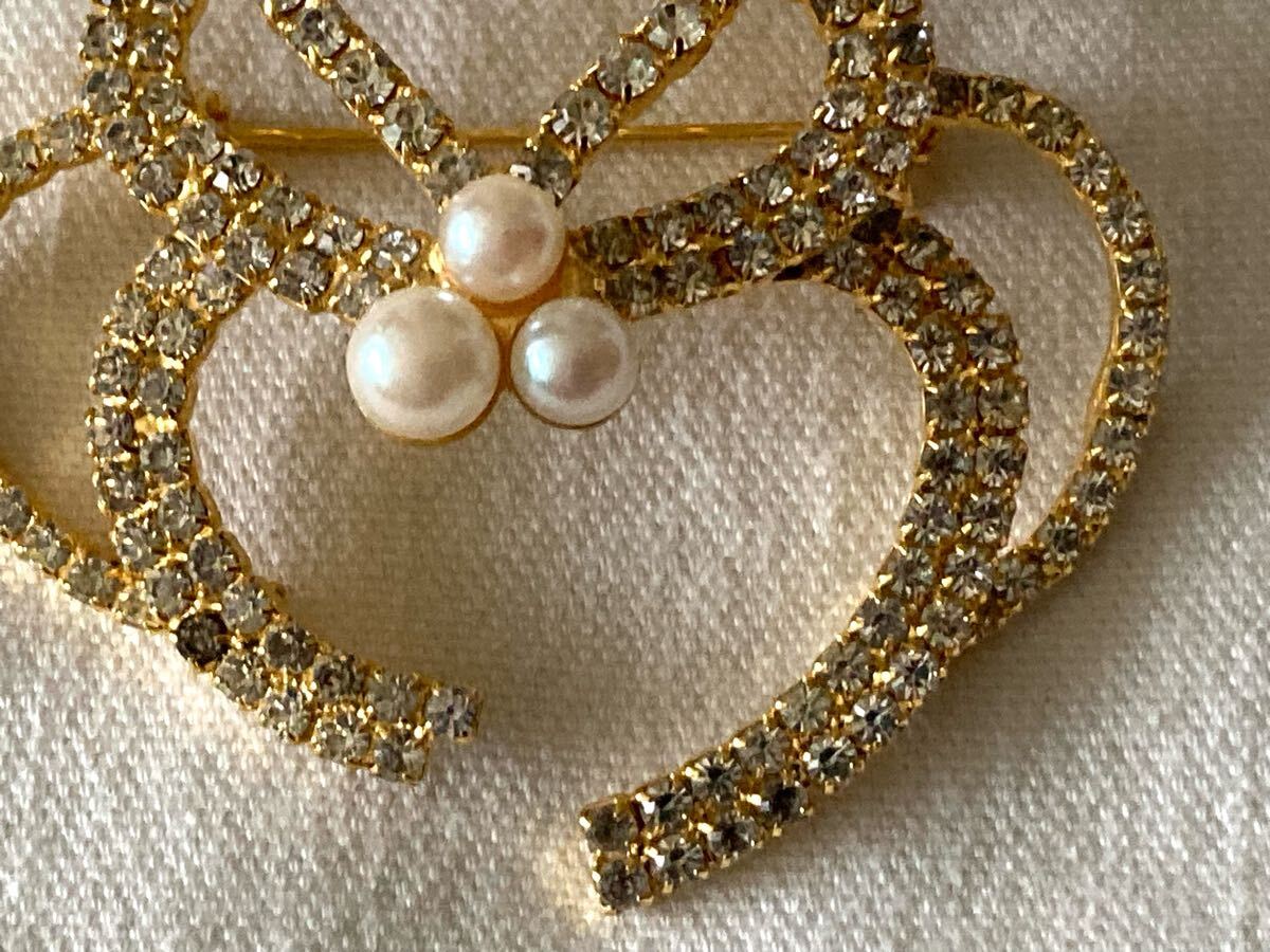 エレガントなハート型ブローチ、パールとクリスタル装飾。