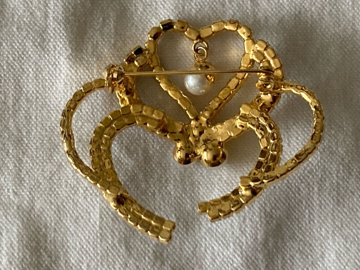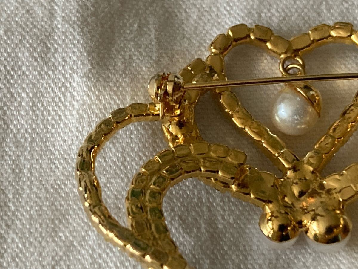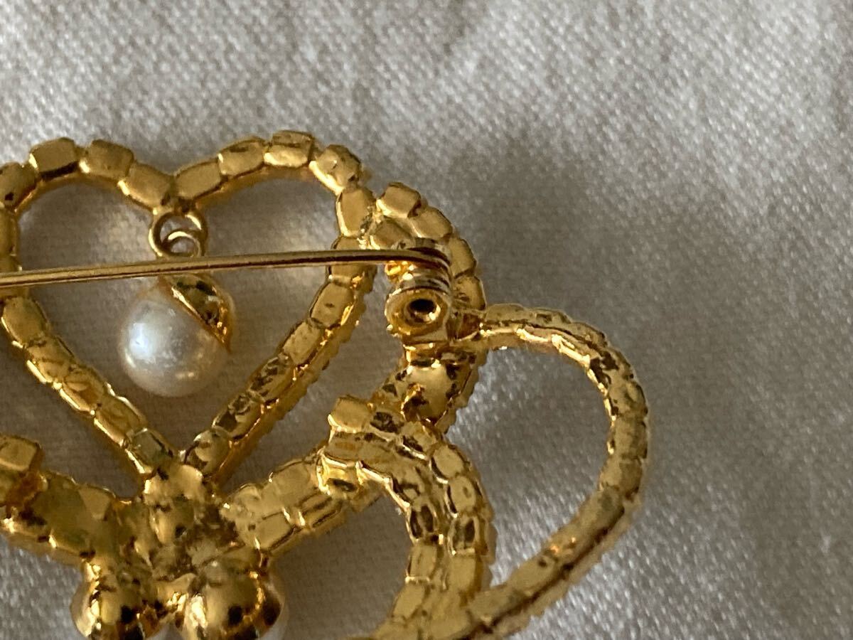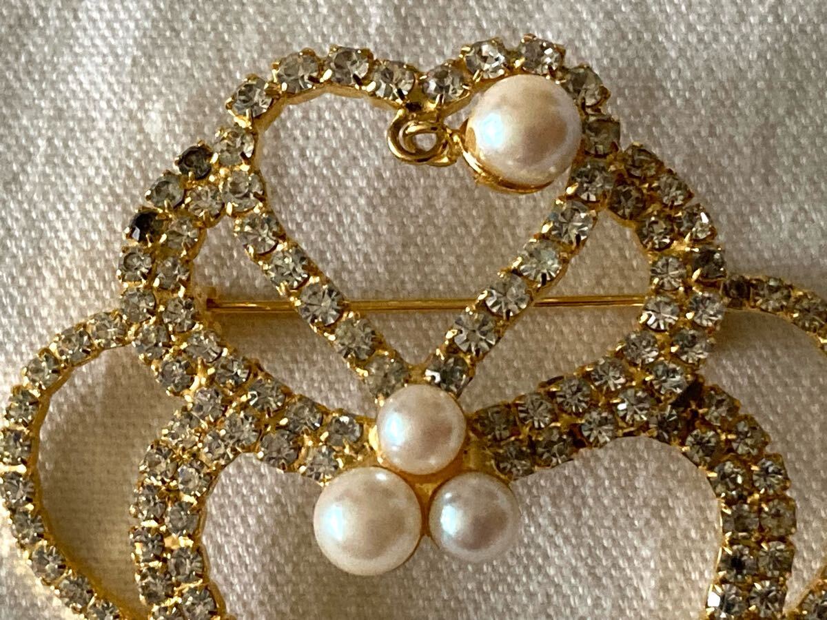 エレガントなハート型ブローチ、パールとクリスタル装飾。