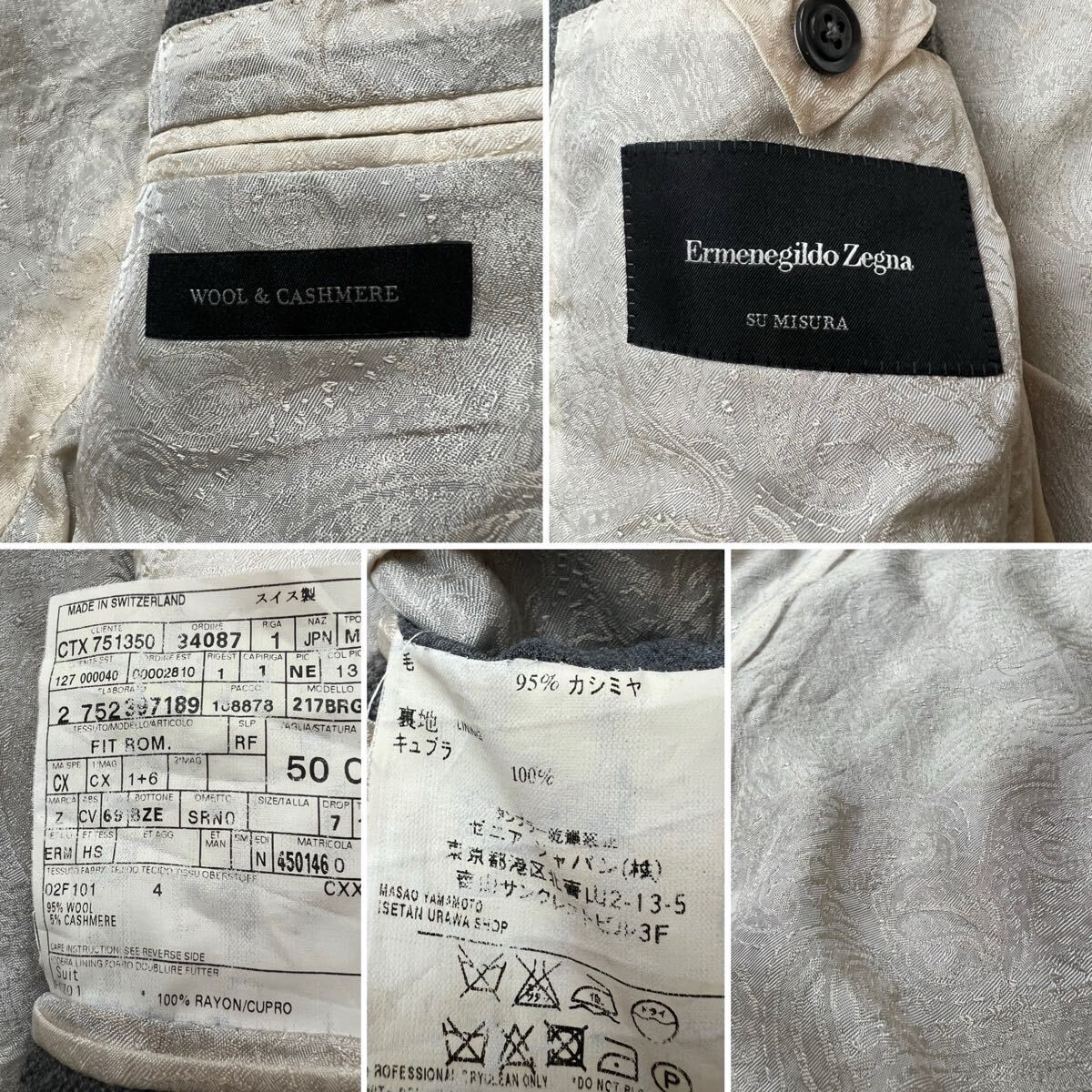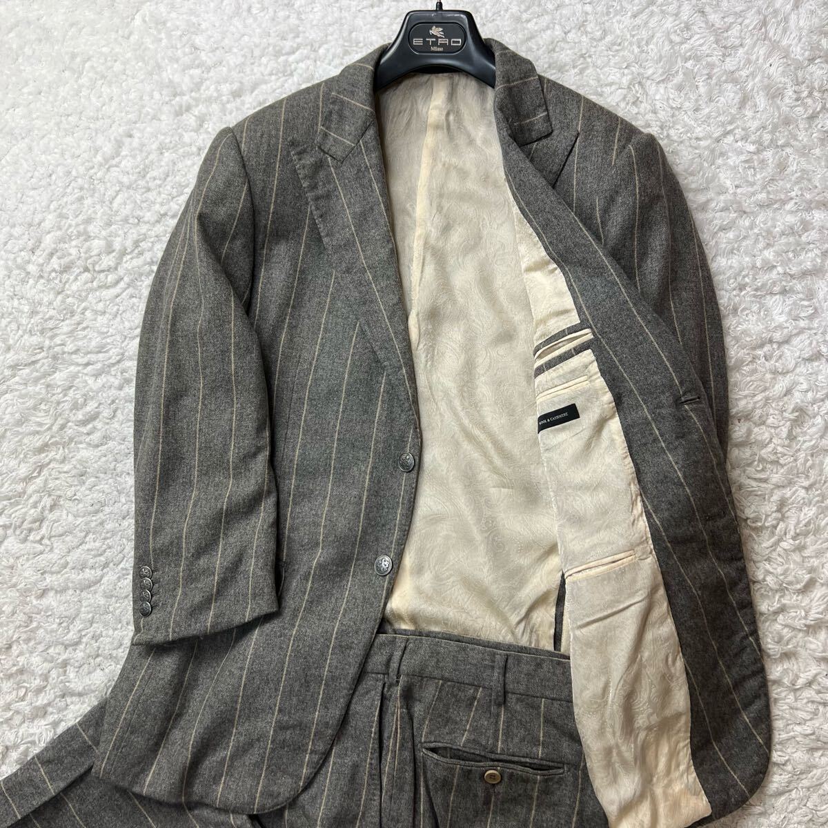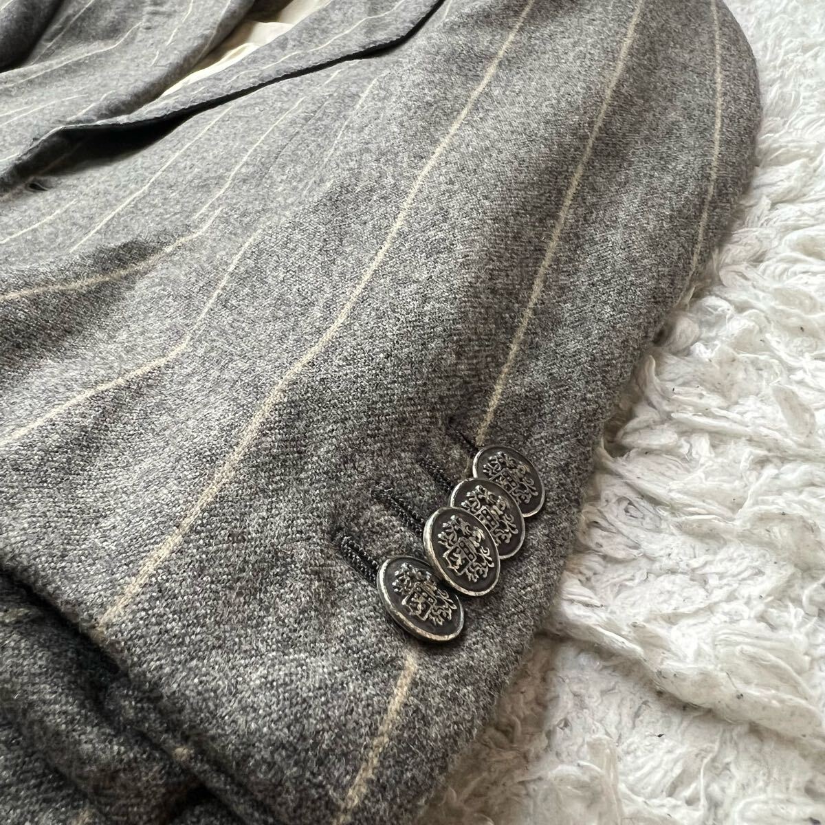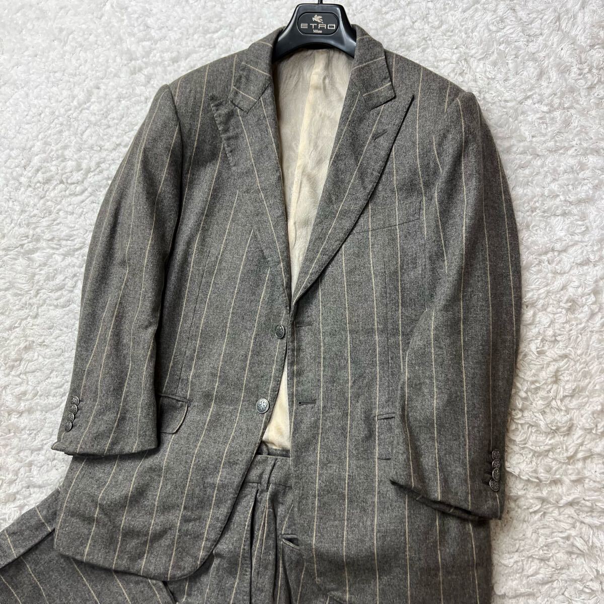 【究極のカスタマイズと上質さ】スーツセットアップ|Ermenegildo Zegna|Su MISURA|ウール&カシミヤ&フランネル生地|ストライプ柄|銀ボタン|裏地ペイズリー柄