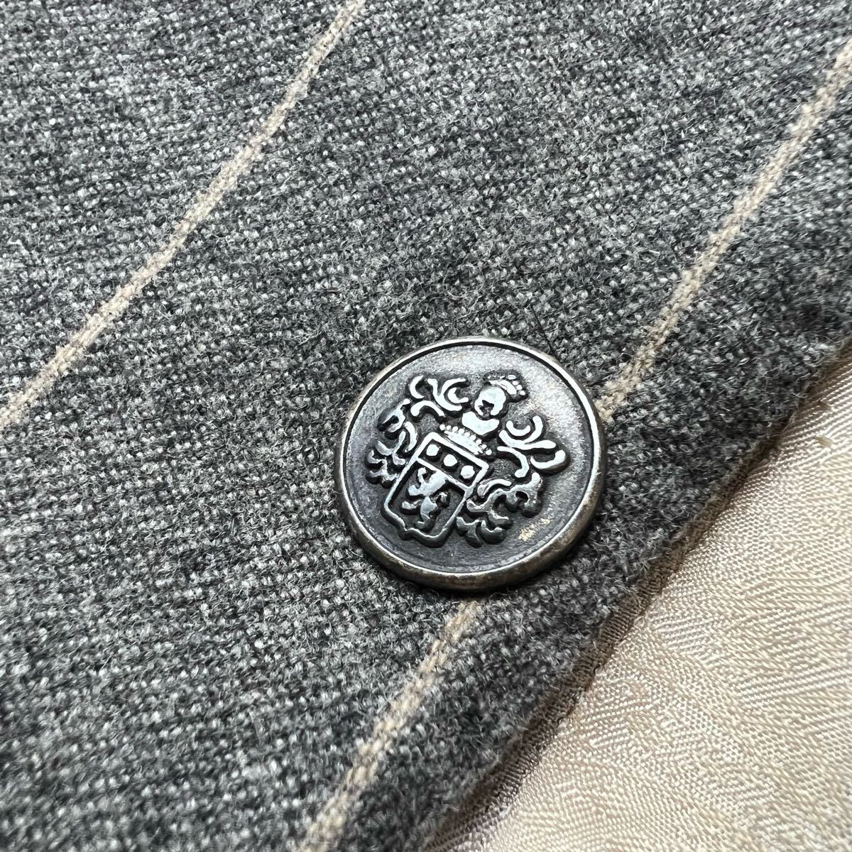 銀ボタンの華やかなアクセント 高品質な銀ボタンが、さりげない輝きをスーツに添え、細部までこだわり抜かれた美しさを際立たせます。