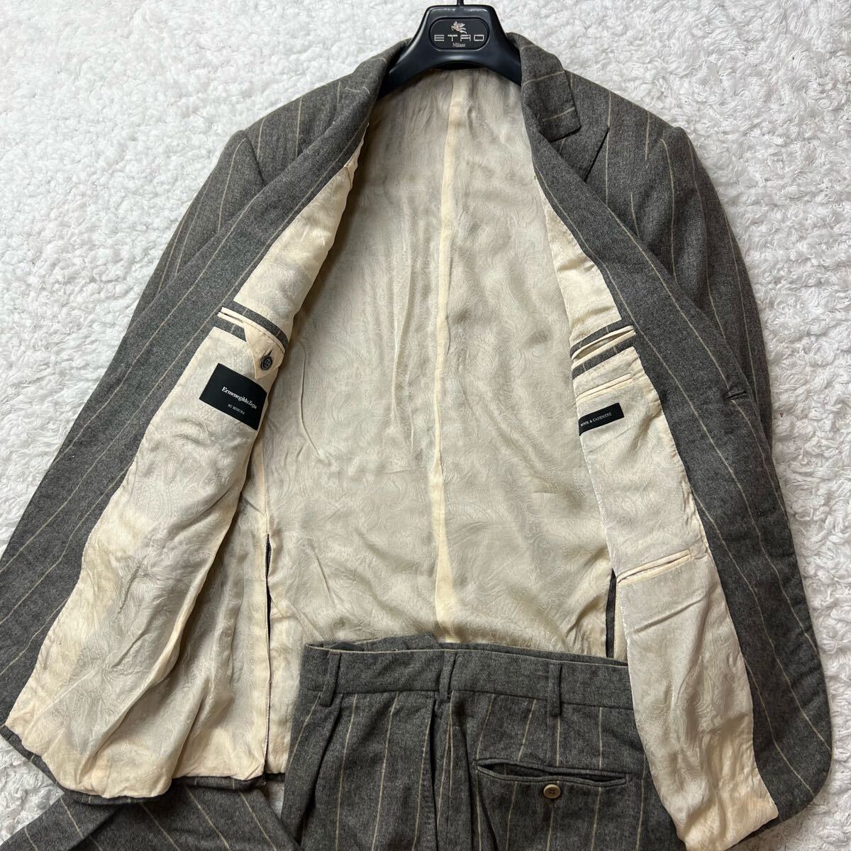 究極の上質さ/極美品◎【Ermenegildo Zegna/エルメネジルドゼニア】希少XLサイズ!!スーツセットアップ 裏地ペイズリー フランネル 銀ボタン