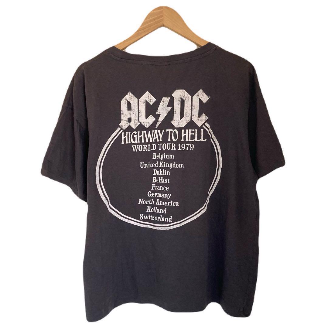 AC/DC バンドTシャツ ロック レディース 半袖 プリント デカロゴ 丸首