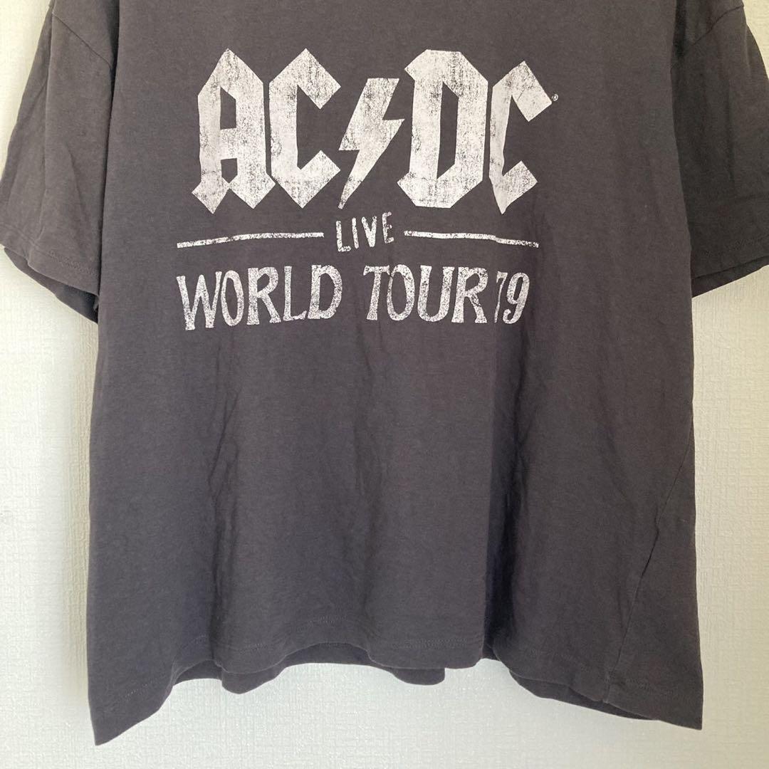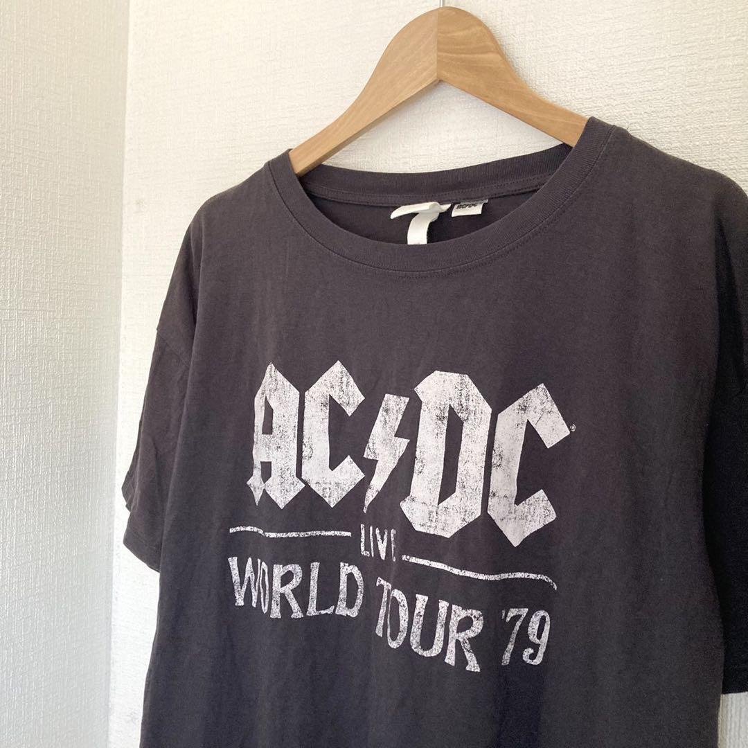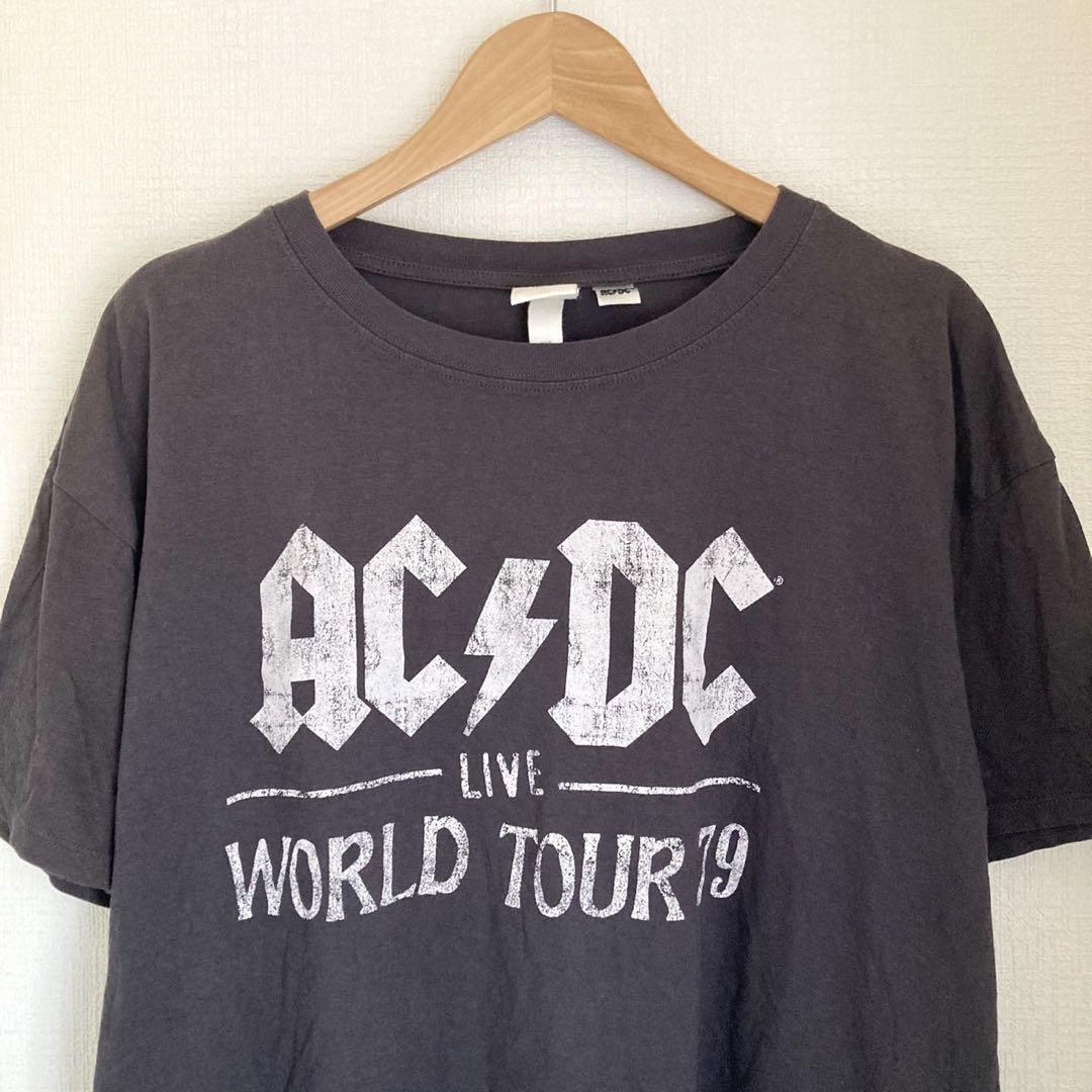 AC/DC バンドTシャツ ロック レディース 半袖 プリント デカロゴ 丸首 コットン