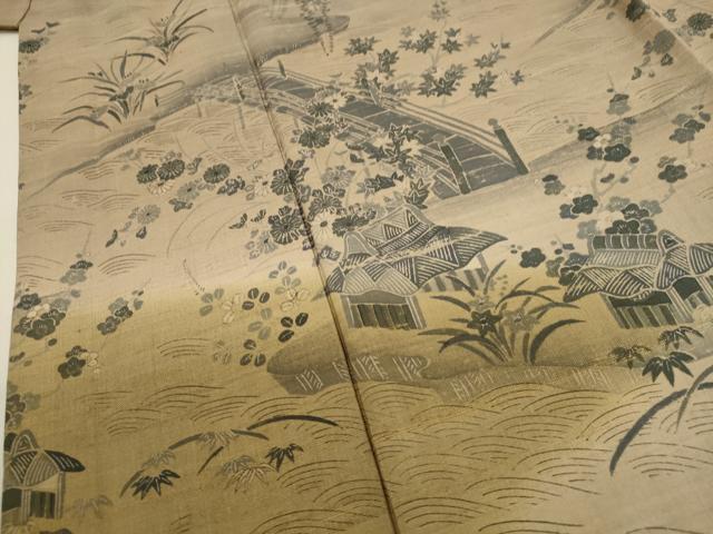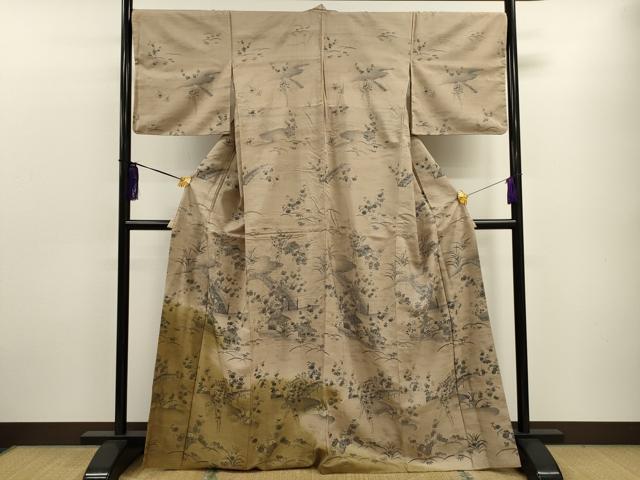 | 【正絹】 状態は接写画像のように八掛に補修跡・破れ、右袖に糸解け、衿山に薄い汚れがございます。 大変上質な逸品になりますのでぜひお手入れをされてお召しになられてはいかがでしょうか。 お安く出品致しますので、是非この機会にいかがでしょうか?